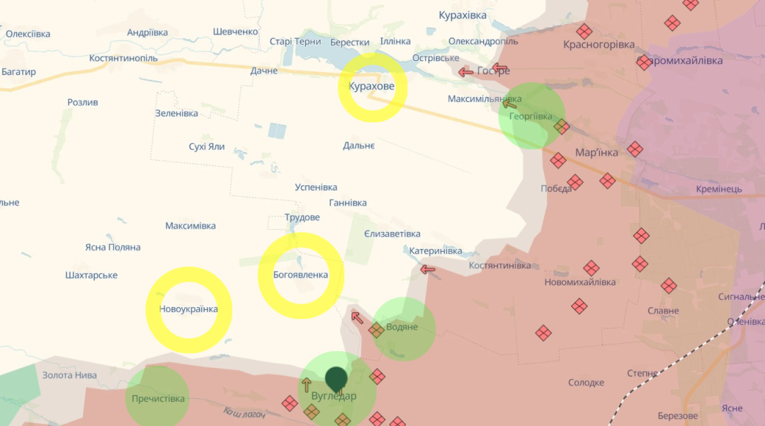 Але, підрозділи які вийшли з Вугледару уникаючи оточення, відходять на рубіж між Новоукраїнкою та Богоявленкою, де лінія оборони як була, так і залишається.