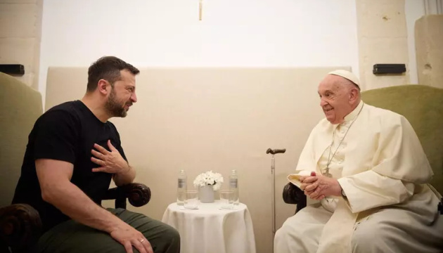 Як повідомляв Укрінформ, остання зустріч Володимира Зеленського із Папою Римським відбулась під час візиту українського лідера до Італії 14 червня 2024 року. Тоді Президент обговорив з Папою Франциском наслідки російської агресії проти України, російський повітряний терор і складну ситуацію в енергетиці.