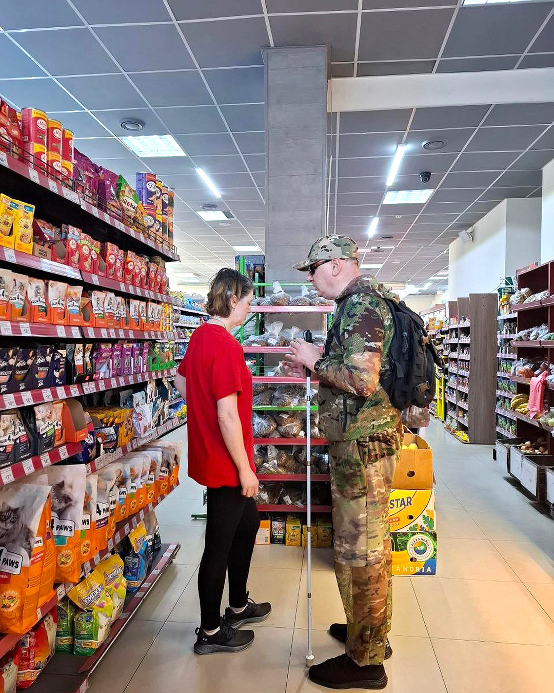 «Ми виїздили на Львівщину в Західний реабілітаційно-спортивний центр Національного комітету спорту людей з інвалідністю, де є всі відповідні умови. Спочатку учасники тренінгу вчилися орієнтуватися з тростиною у приміщенні. З ними працював психолог. Це дуже важливо, адже людям дуже складно “виходити з темряви” і починати щось робити самостійно, особливо тим, хто вже тривалий час перебуває у такому стані. Після того як вони набували певних навиків, ми виїздили у райцентр, де учасники програми намагалися виконати вже складніші завдання, як-от перейти вулицю або прогулятися тротуаром», – розповідає Олександр і додає, що паралельно ведеться робота з родинами. Їх знайомлять з правилами супроводу такої людини, щоб уникнути гіперопіки. Важливо, щоб близькі допомагали ветерану розвиватися, а не все за нього робили.