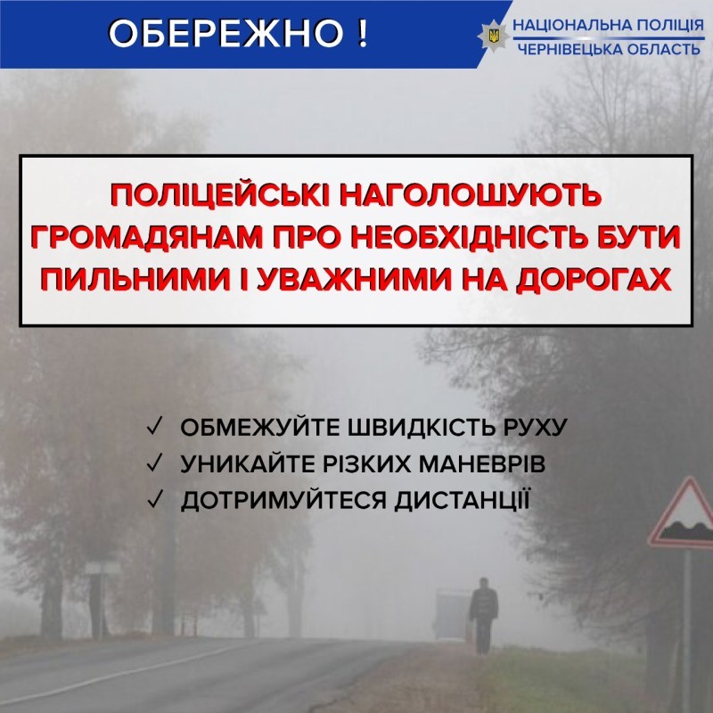 Поліцейські звертаються до водіїв з проханням обирати безпечну швидкість та дистанцію під час руху транспортного засобу, враховувати обмежену видимість, зокрема у темну пору доби, а також стан дорожнього покриття. Уникайте різкого гальмування, маневрування і в жодному разі не сідайте за кермо у стані сп’яніння.