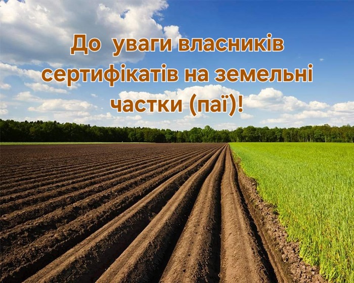 До уваги власників невитребуваних земельних ділянок (паїв) на підставі сертифікатів на право на земельну частку (пай)!