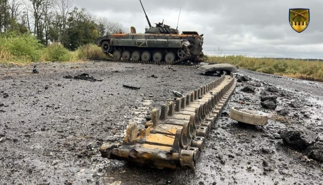 Також Сили оборони України знищили 9071 (+24) російський танк, бойових броньованих машин – 18175 (+64), артилерійських систем – 19589 (+24), РСЗВ – 1232 (+0), засобів ППО – 979 (+1), літаків – 369 (+0), гелікоптерів – 329 (+0), БПЛА оперативно-тактичного рівня – 17333 (+46), крилатих ракет – 2624 (+0), кораблів / катерів – 28 (+0), підводних човнів – 1 (+0), автомобільної техніки та автоцистерн – 27034 (+47), спеціальної техніки – 3479 (+3).