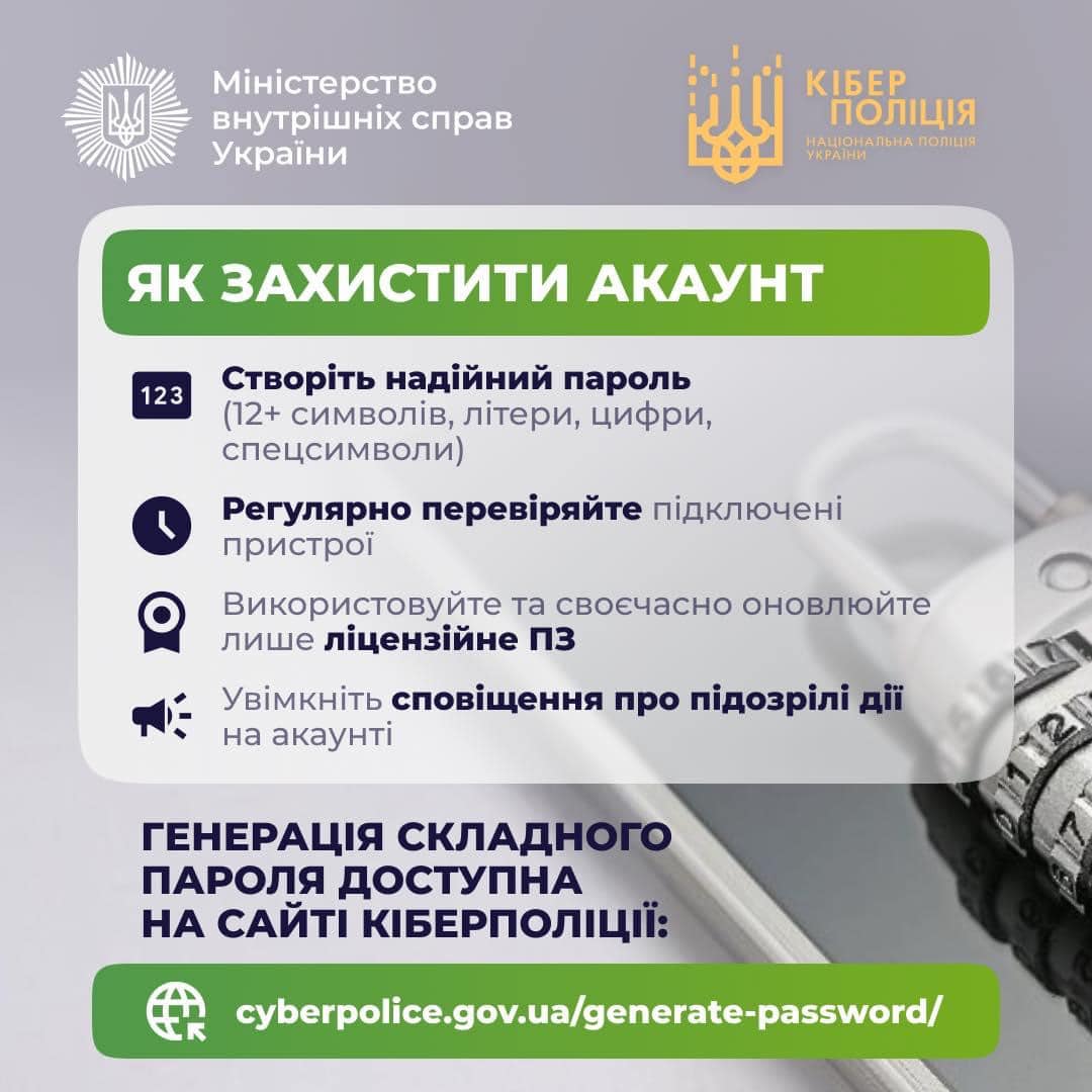 А для створення надійного пароля ви можете скористатися сервісом Кіберполіції з генерації паролів.