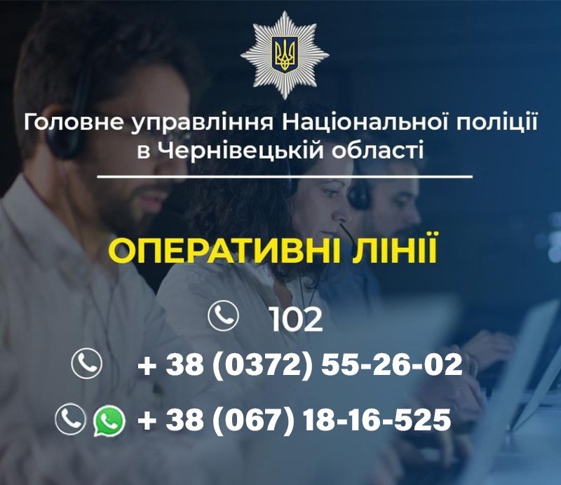 Співробітники поліції Чернівецької області повідомляють, що крім звичної спецлінії «102», звернення від громадян приймаються на додаткові номери телефонів та у месенджері: у текстовому, аудіо та відеоформаті.