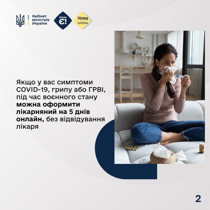 Якщо відчуваєте симптоми COVID-19, грипу чи ГРВІ, лікарняний можна отримати онлайн. Просто зателефонуйте або напишіть лікарю – це може бути ваш сімейний або будь-який інший фахівець.