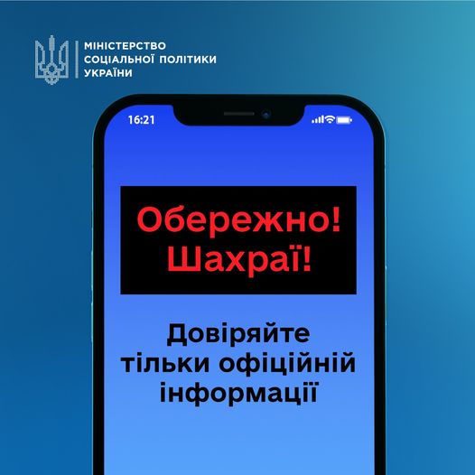До уваги! Мінсоцполітики попереджає про шахраїв, які поширюють фейкові повідомлення від Міністерства