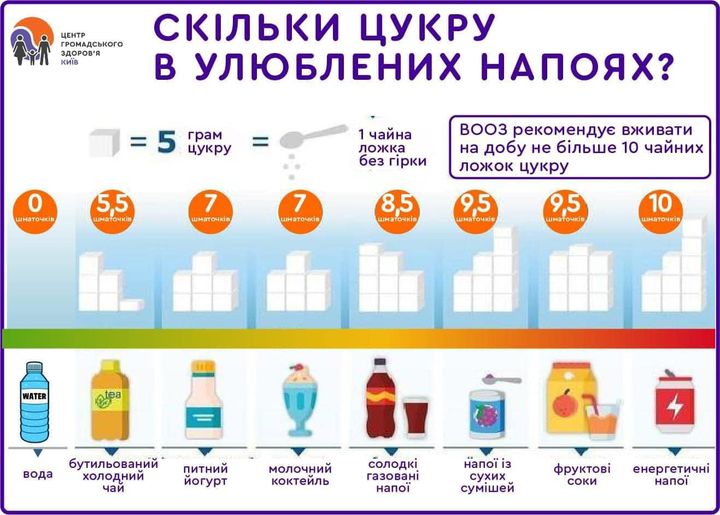 • Може збільшити ризик серцево-судинних захворювань. Дієти з високим вмістом цукру пов’язані з підвищеним ризиком багатьох захворювань, зркрема хвороби серця, ожиріння, високий рівень тригліцеридів, цукор у крові та підвищення артеріального тиску. Крім того, споживання занадто великої кількості цукру (особливо з підсолоджених напоїв) пов’язане з атеросклерозом. 1 пляшка з газованою водою містить 52 г цукру, що становить більш як 10% вашого щоденного споживання калорій. 1 солодкий напій на день може перевищити рекомендовану добову норму доданого цукру.
