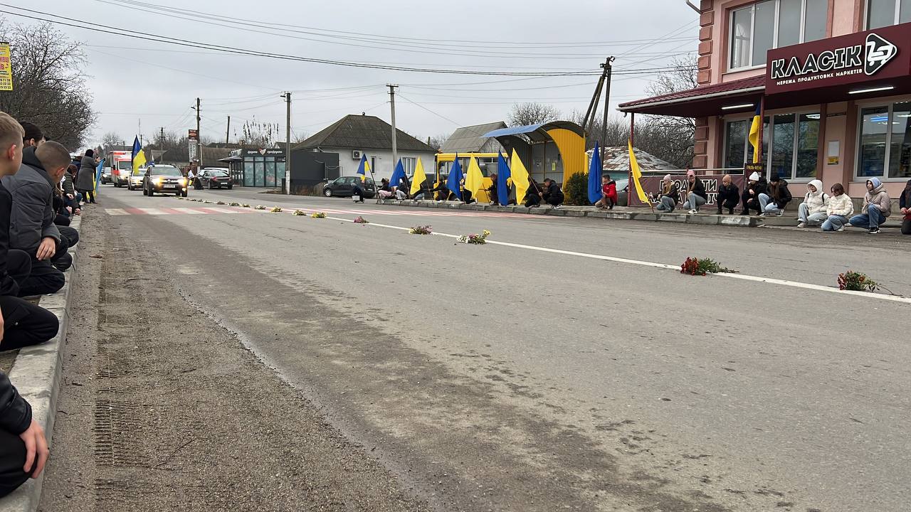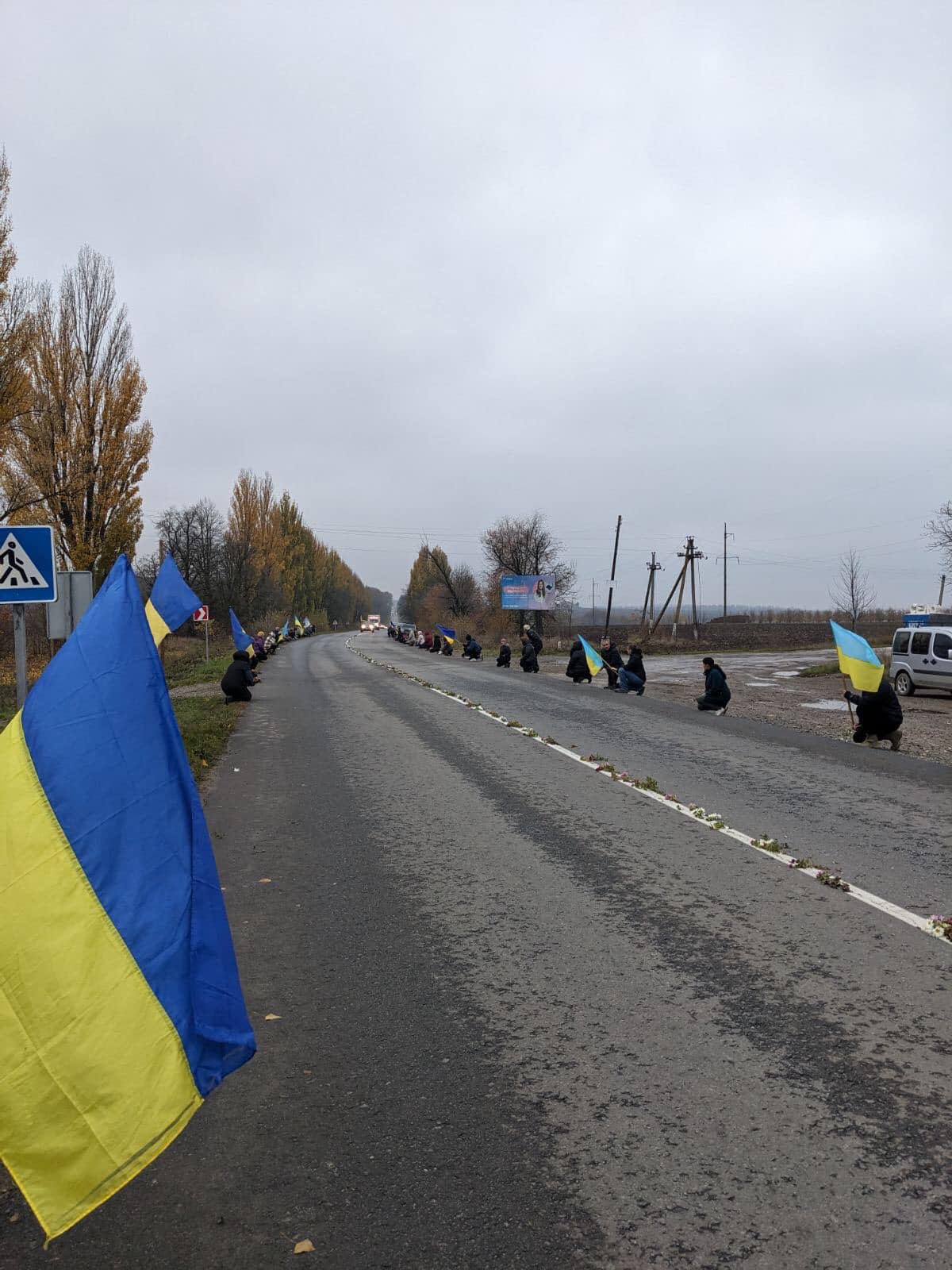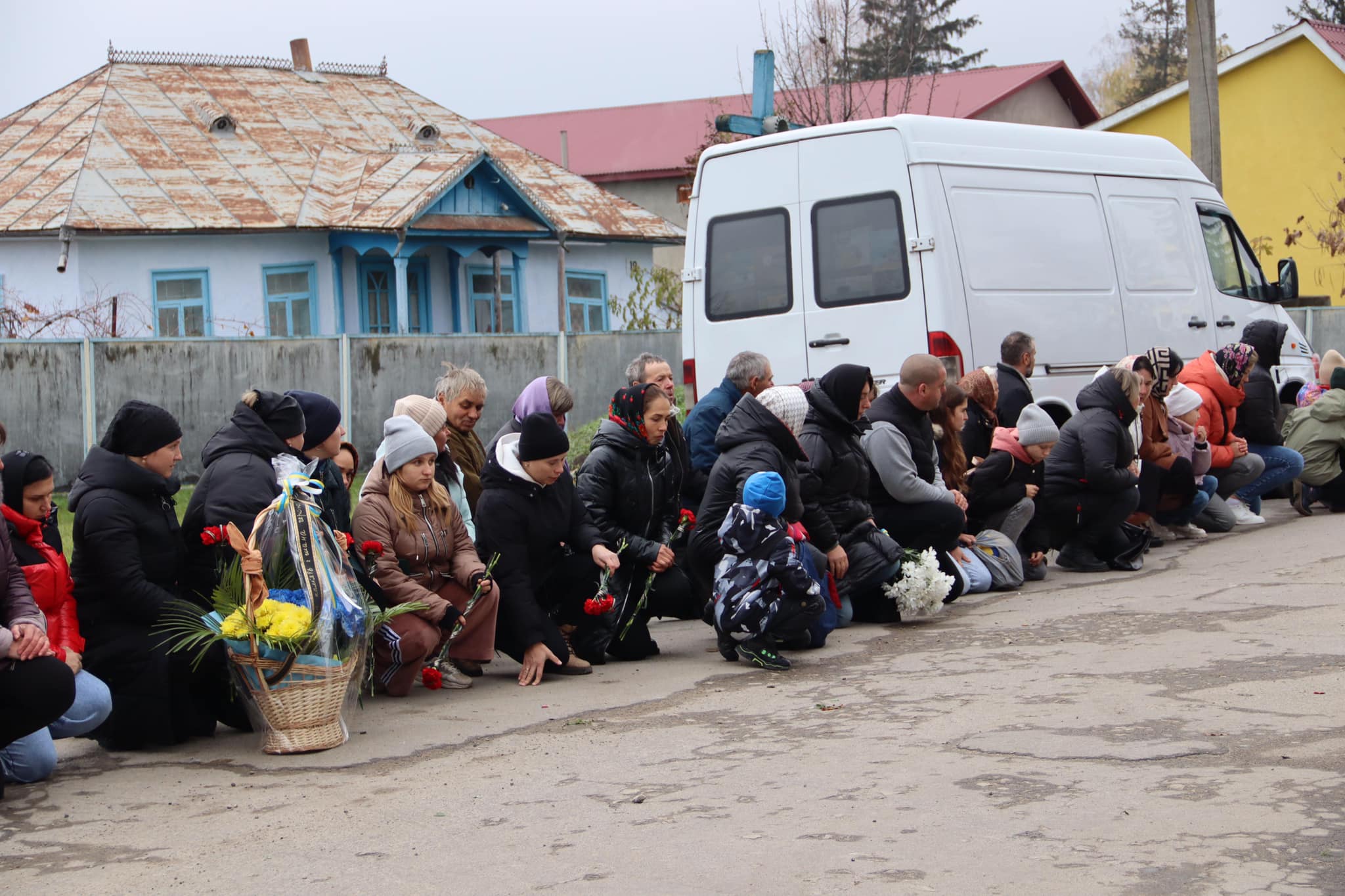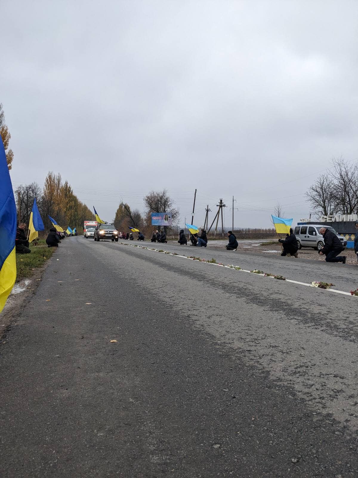 Зустріти Героя вздовж автошляхів громади вийшли місцеві жителі. Стоячи на колінах, з живими квітами і прапорами люди дякували воїну за подвиг, за захист, за спокій, який сьогодні дається величезною ціною, ціною людського життя…