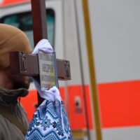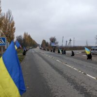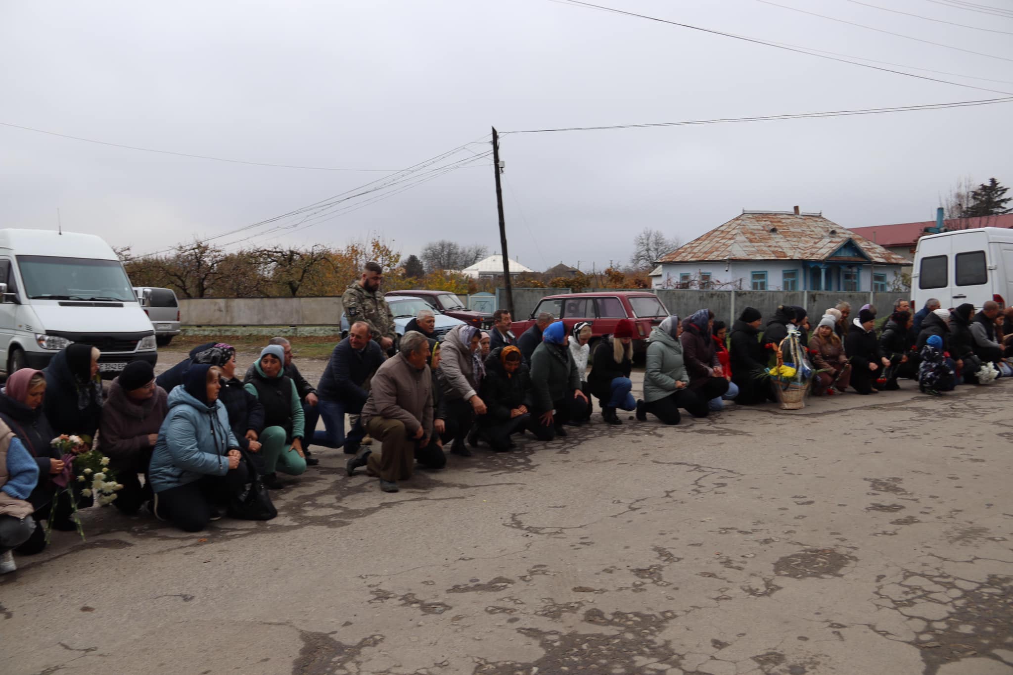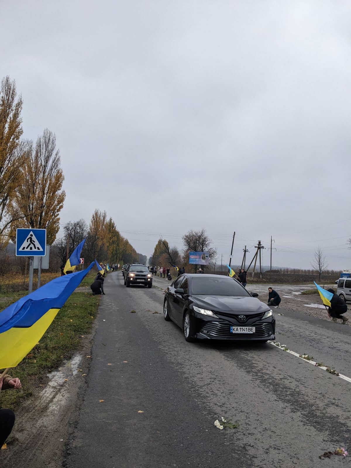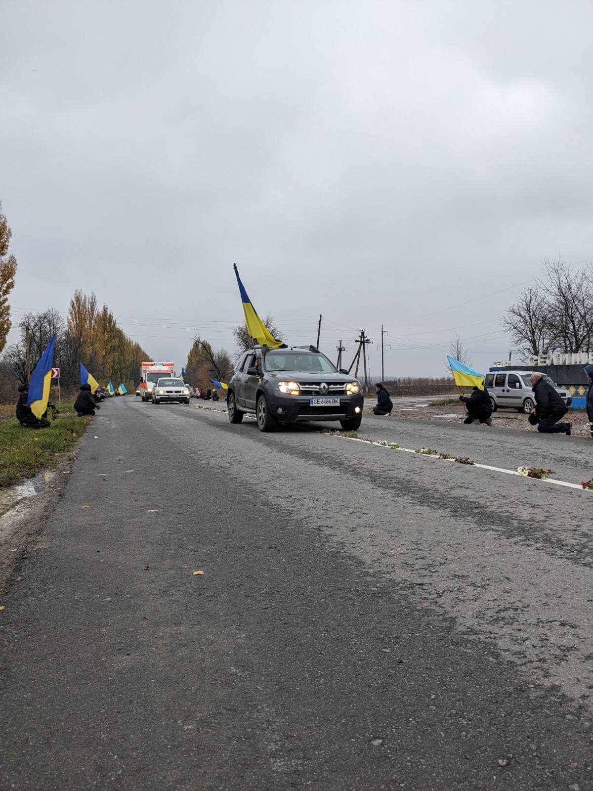 Зустріти Героя вздовж автошляхів громади вийшли місцеві жителі. Стоячи на колінах, з живими квітами і прапорами люди дякували воїну за подвиг, за захист, за спокій, який сьогодні дається величезною ціною, ціною людського життя…