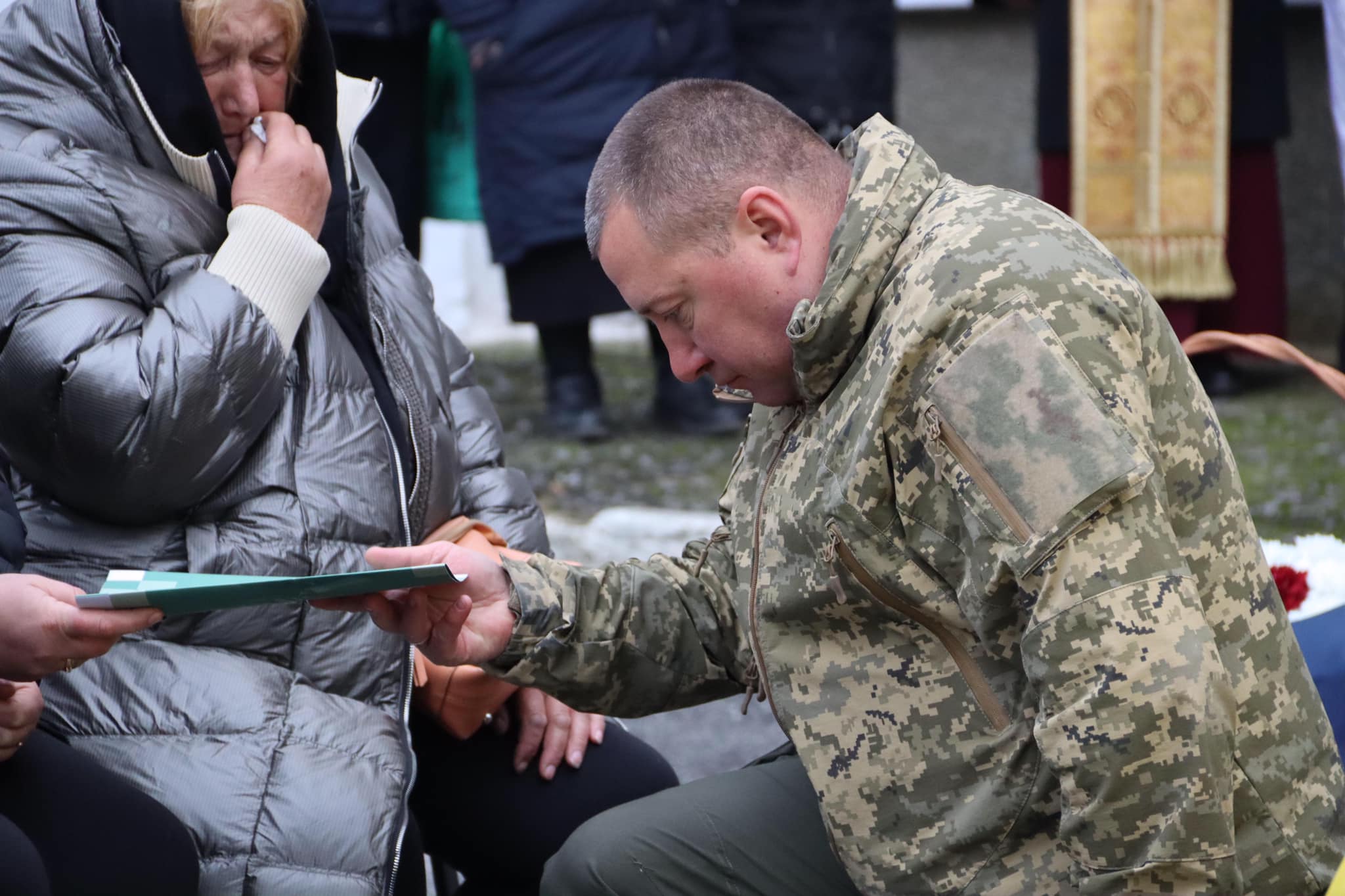Лист пошани та скорботи Президента України – Верховного Головнокомандувача Збройних Сил України Володимира Зеленського рідним Андрія Пустовалова, дякуючи за жертовне служіння в лавах ЗСУ, вручив начальник другого відділу Дністровського РТЦК та СП Володимир Кучінік.