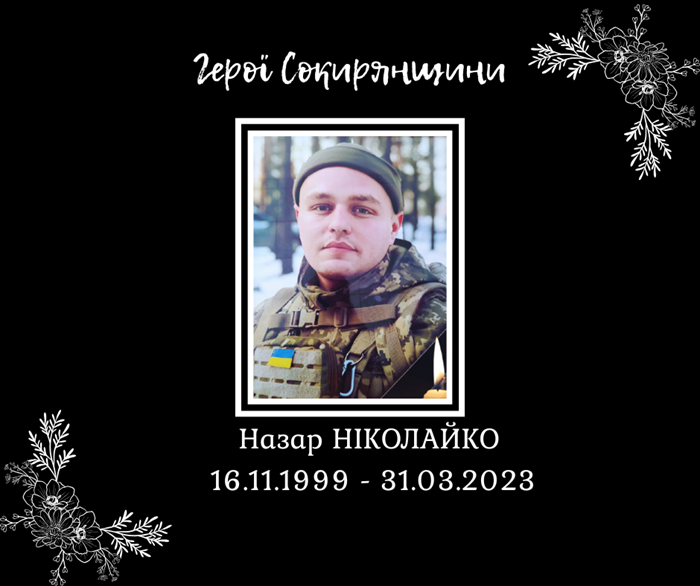 Загинув Назар Ніколайко 31 березня 2023 року виконуючи бойове завдання в районі населеного пункту Мар’їнка Донецької області.
