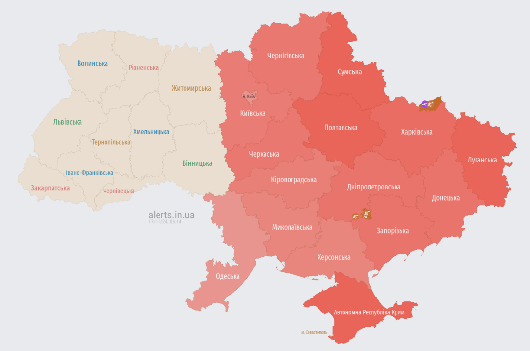 З акваторії Чорного моря ворог запустив «Калібри», у більшості областей – повітряна тривога