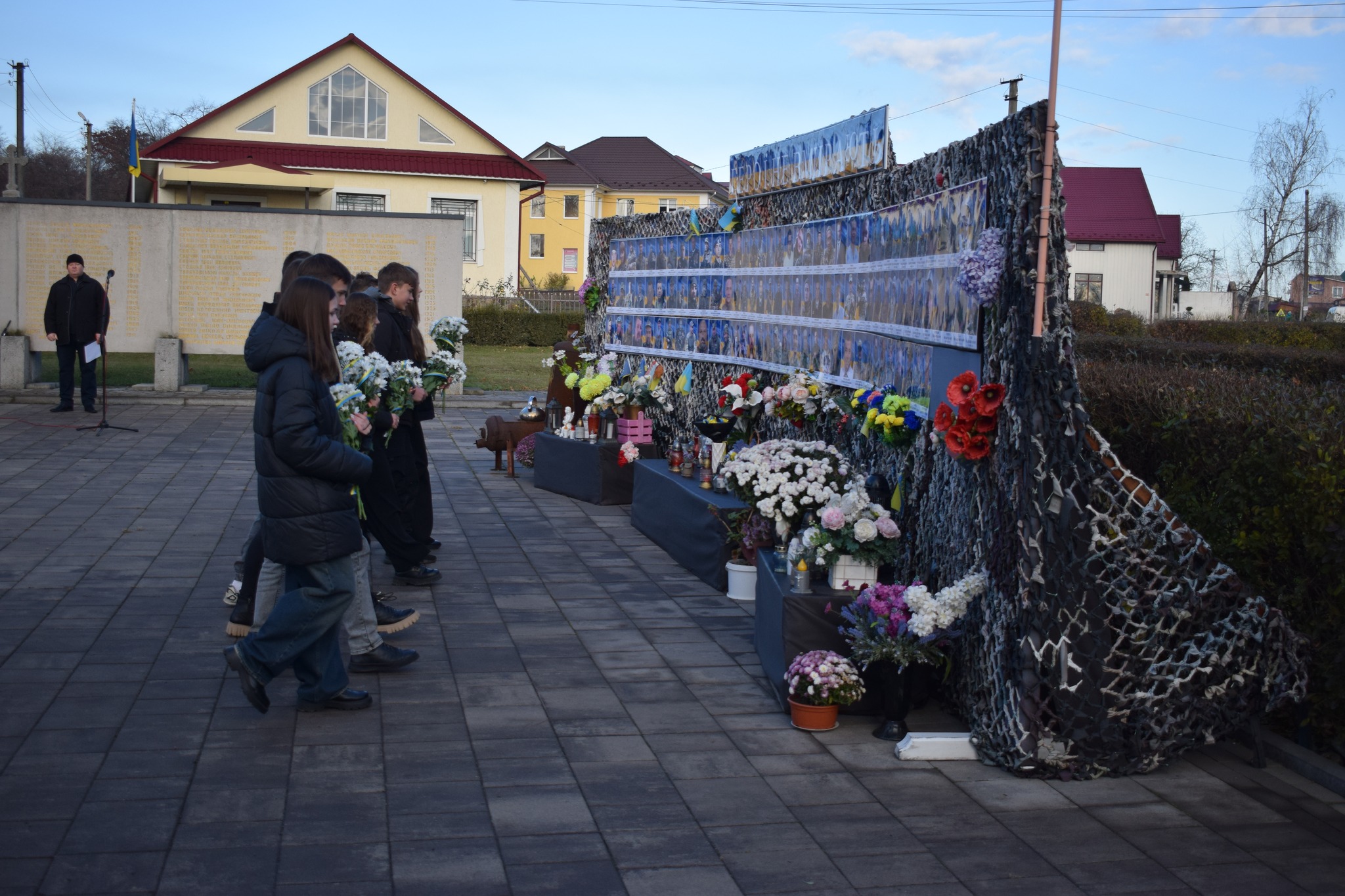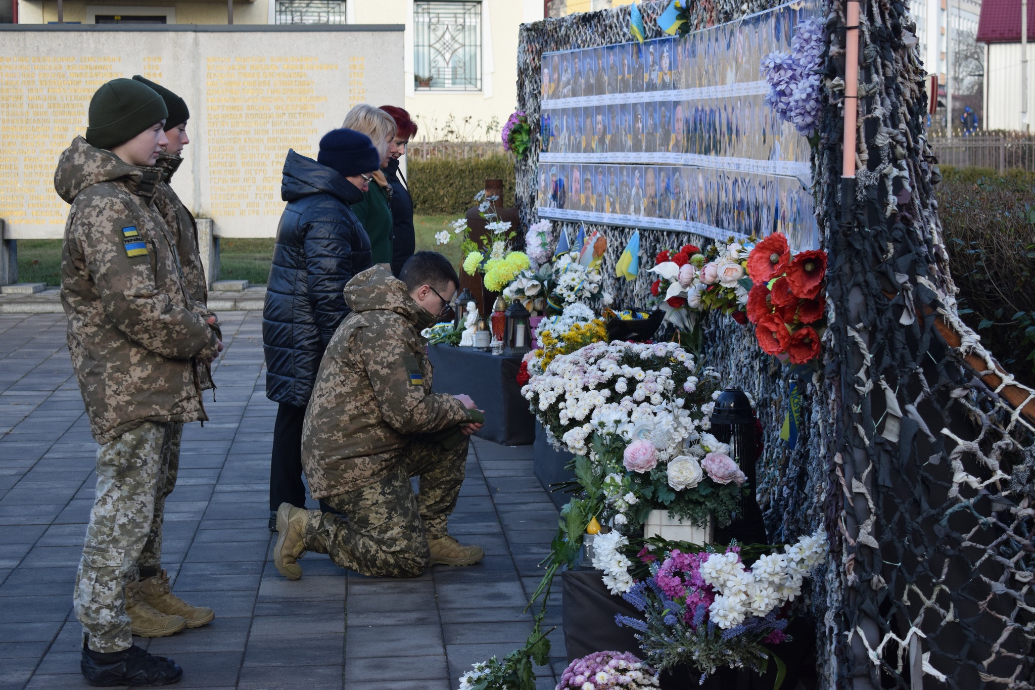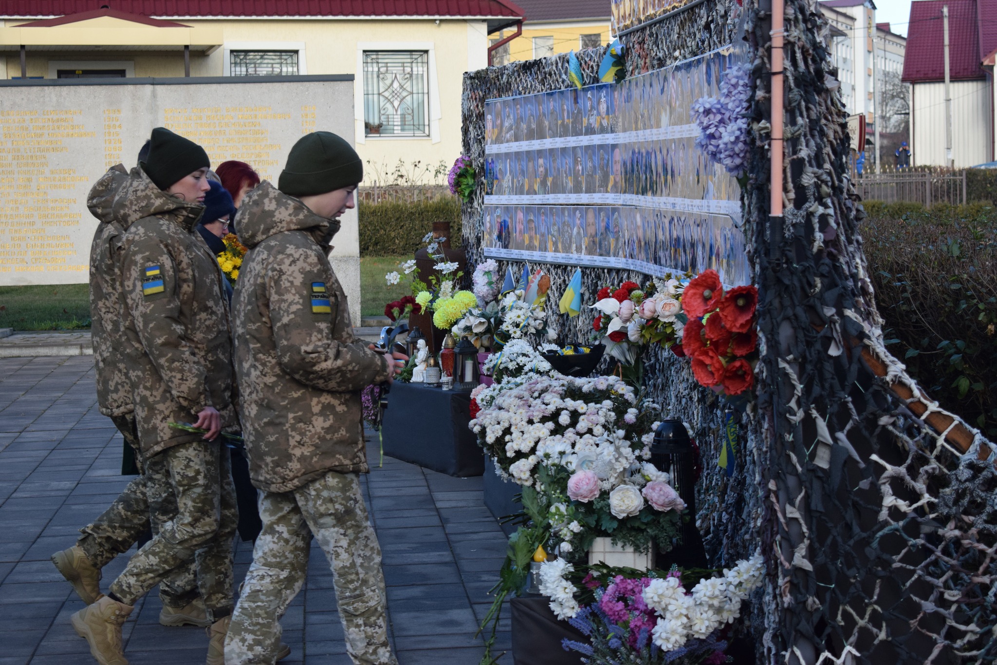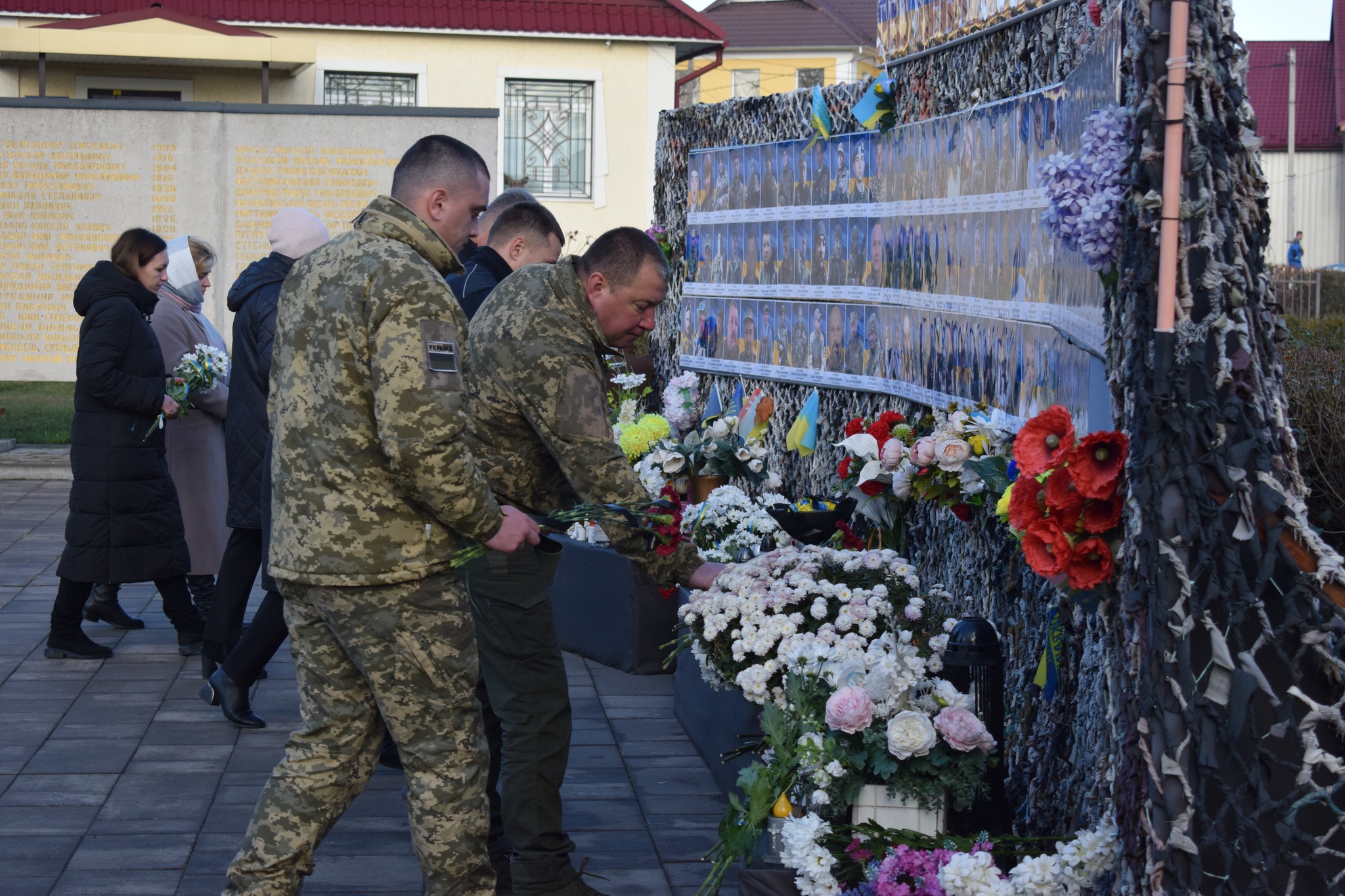 У 1000-й день повномасштабної російсько-української війни лягли квіти до символічної стели пам’яті загиблих Героїв та Героїні, наших земляків, що в місті Сокиряни.