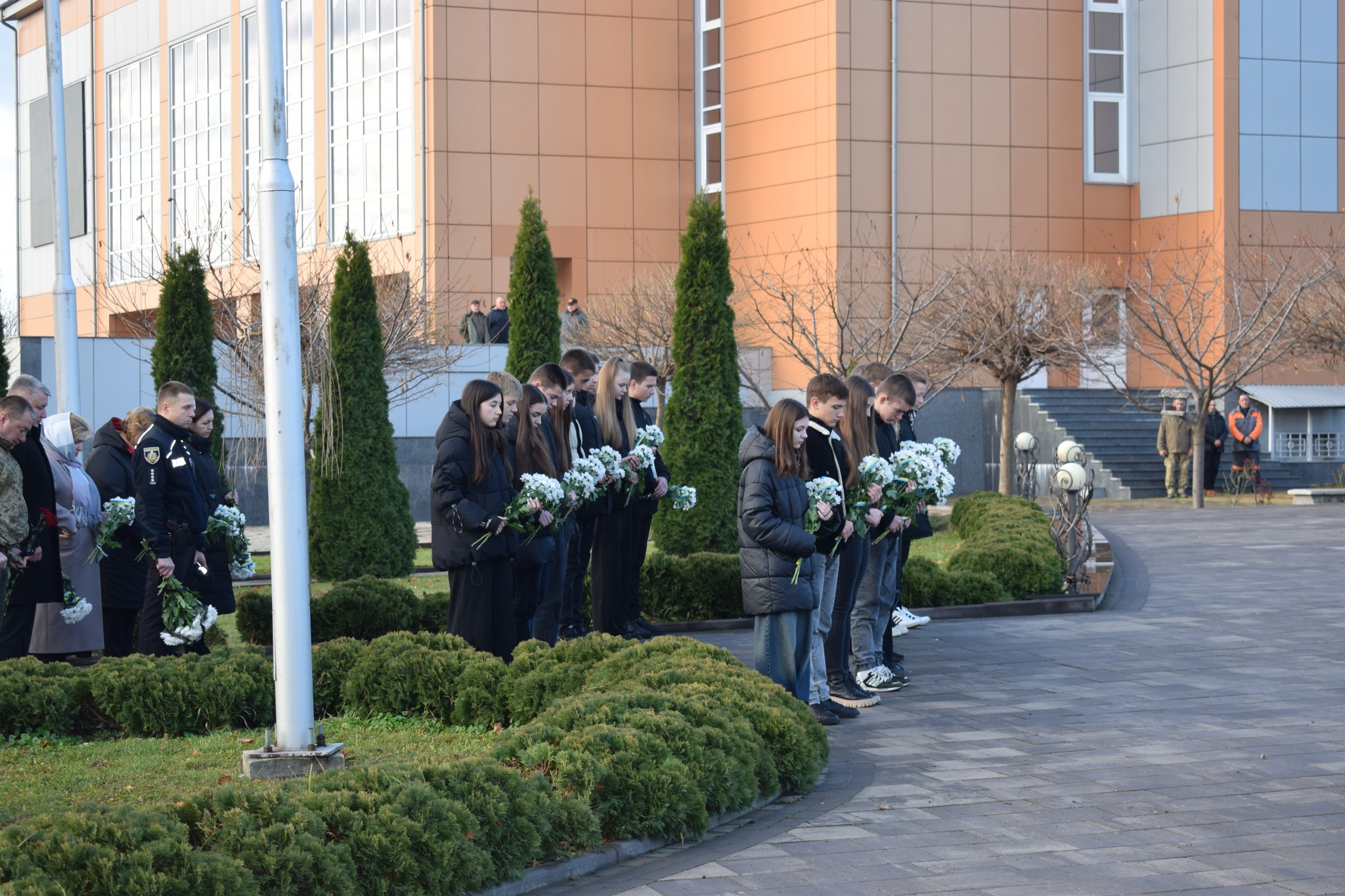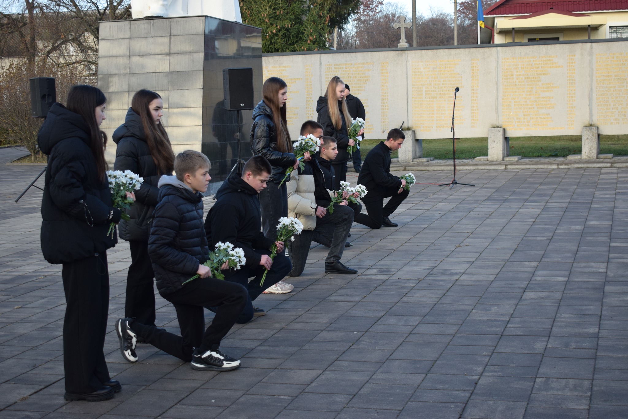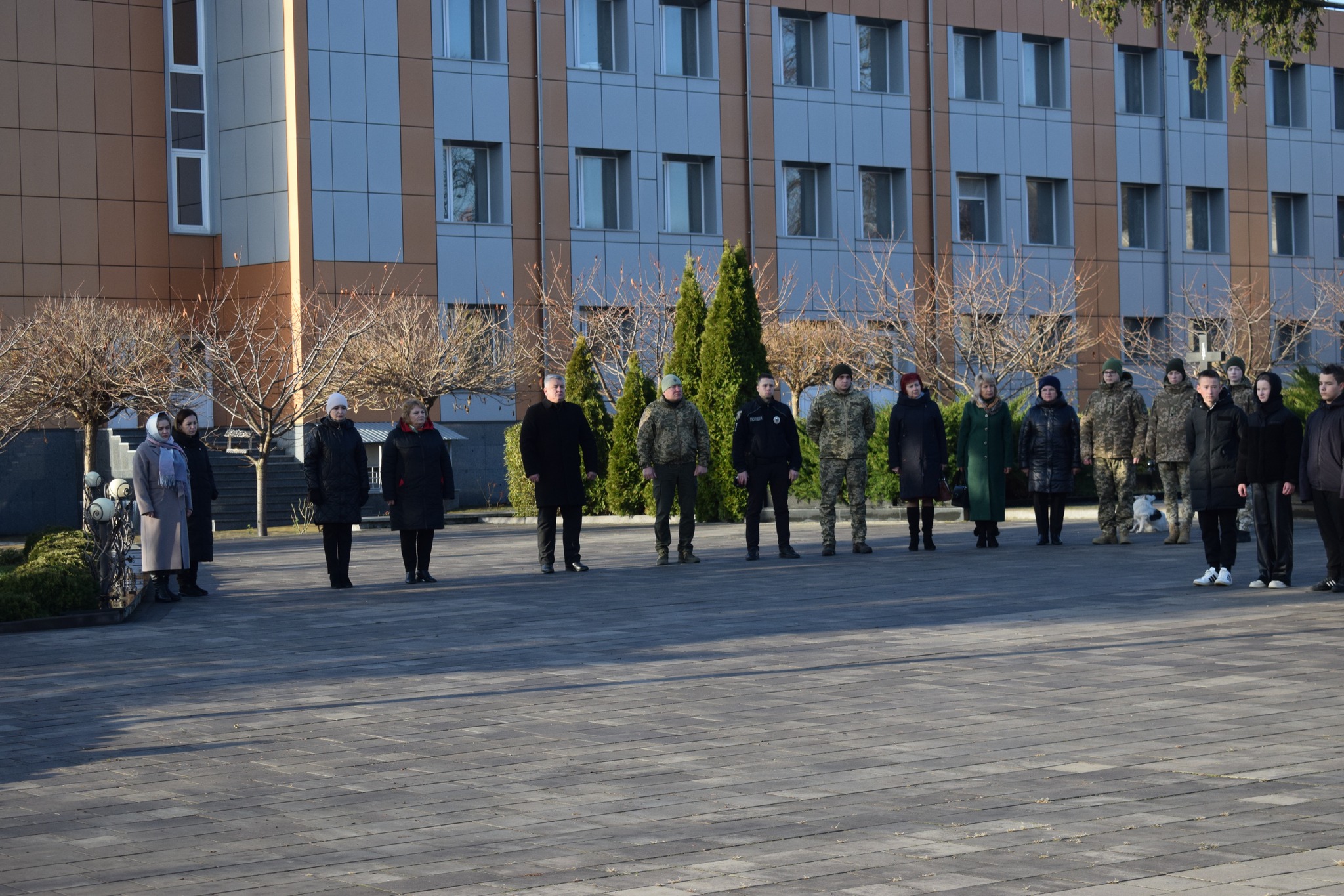 Учні закладів загальної середньої освіти адміністративного центру громади, секретар міської ради Любов Степаненко, заступники міського голови Іван Гангал та Оксана Бабій, керуюча справами виконавчого комітету Ауріка Мойсенко, начальник Другого відділу Дністровського РТЦК та СП Володимир Кучінік, представники відділу прикордонної служби «Сокиряни» Державної прикордонної служби України, заступник начальника сектору взаємодії з громадами відділення поліції №1 (м.Сокиряни) Дністровського відділу поліції ГУНП в Чернівецькій області Василь Мігалескул, освітяни, працівники міської ради хвилиною мовчання вшанували пам’ять всіх полеглих Захисників та Захисниць України, які віддали життя за Батьківщину та кожного її громадянина, віддано і мужньо служили Українському народу та до останнього подиху захищали правду і волю своєї країни.