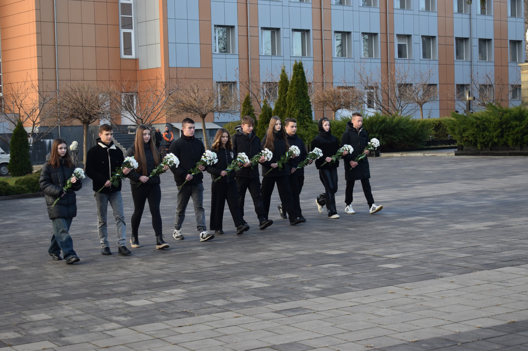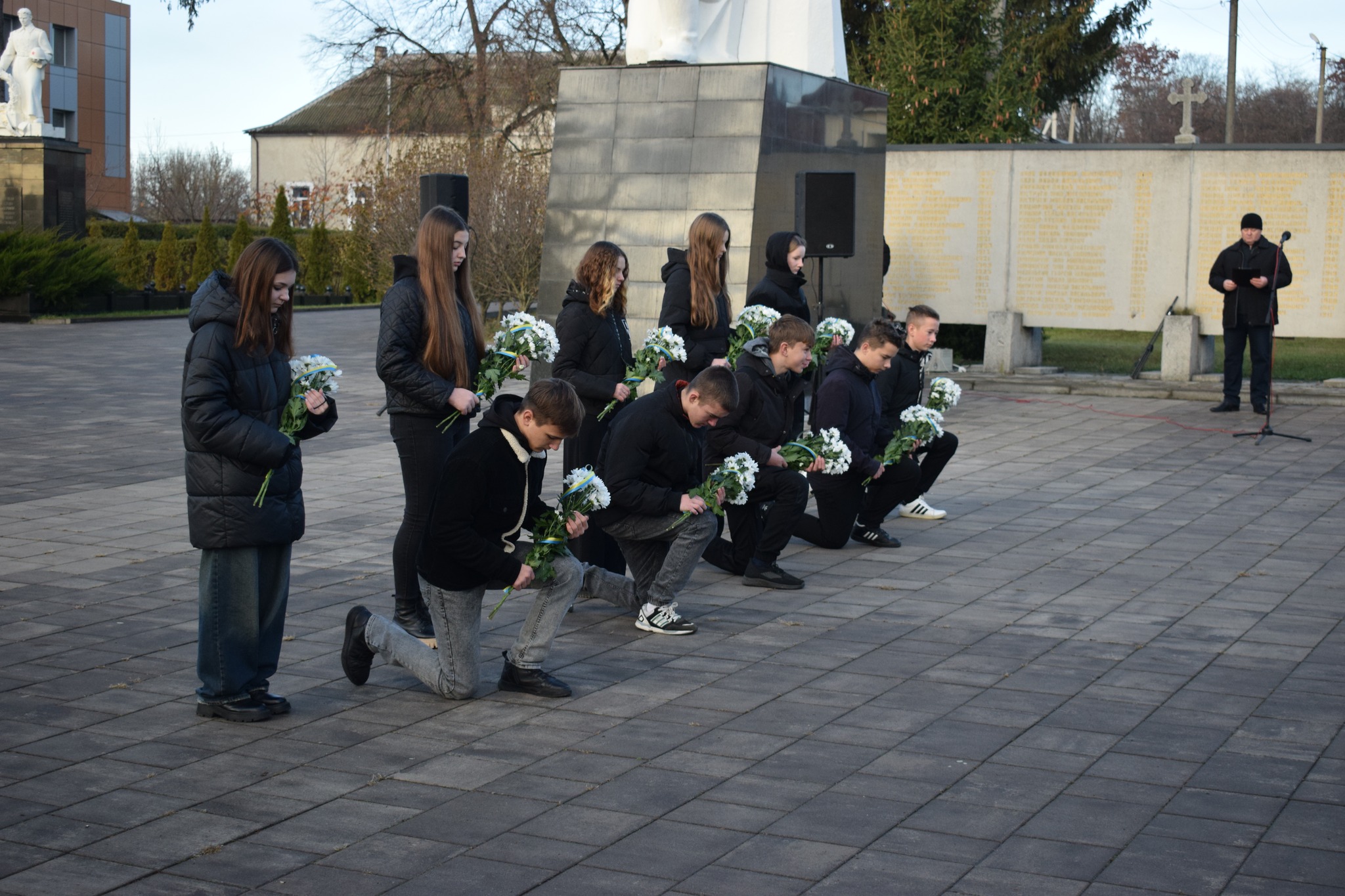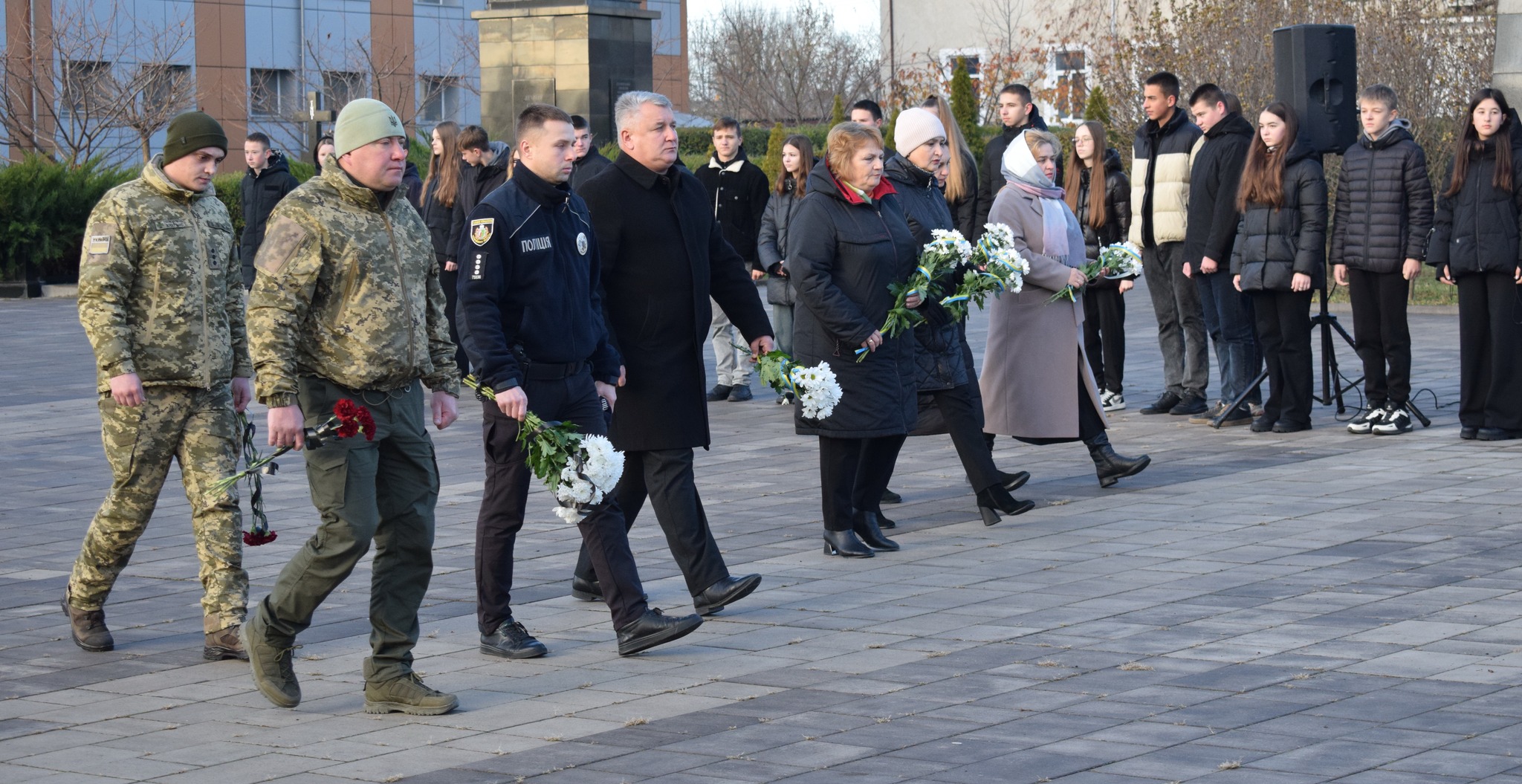 Учні закладів загальної середньої освіти адміністративного центру громади, секретар міської ради Любов Степаненко, заступники міського голови Іван Гангал та Оксана Бабій, керуюча справами виконавчого комітету Ауріка Мойсенко, начальник Другого відділу Дністровського РТЦК та СП Володимир Кучінік, представники відділу прикордонної служби «Сокиряни» Державної прикордонної служби України, заступник начальника сектору взаємодії з громадами відділення поліції №1 (м.Сокиряни) Дністровського відділу поліції ГУНП в Чернівецькій області Василь Мігалескул, освітяни, працівники міської ради хвилиною мовчання вшанували пам’ять всіх полеглих Захисників та Захисниць України, які віддали життя за Батьківщину та кожного її громадянина, віддано і мужньо служили Українському народу та до останнього подиху захищали правду і волю своєї країни.