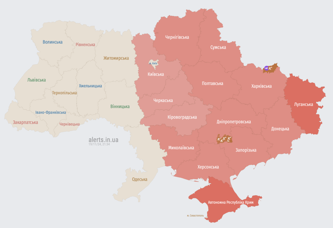 Як передає Укрінформ, про це свідчать дані Мапи тривог України.