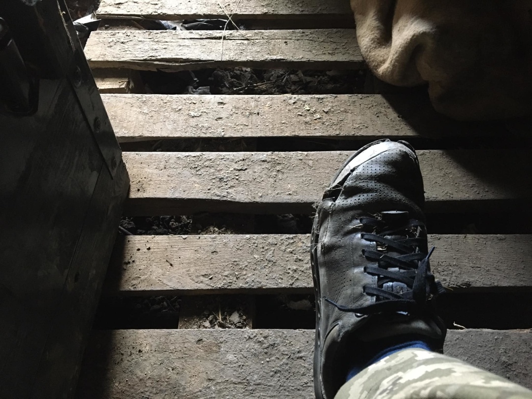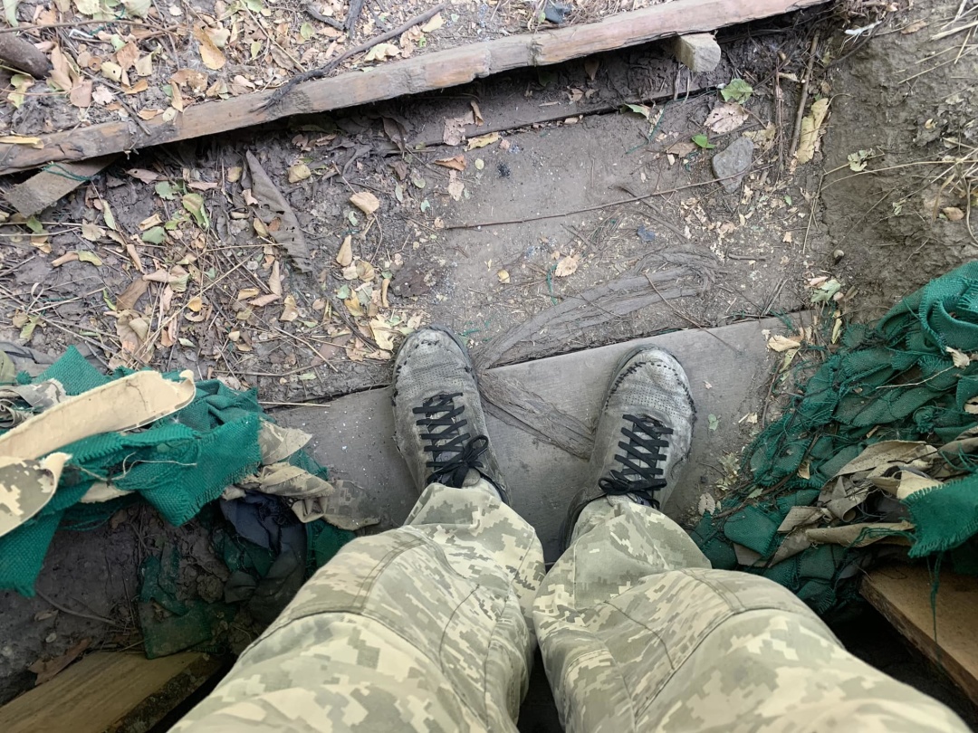 Цікавлюся практичним боком питання – чи військовий справді не носить берців? Адже з фото видно, що ці шкари от-от розваляться. Очевидно, що облаштовувати позиції чи ходити в наряди в них не дуже комфортно, м’яко кажучи.