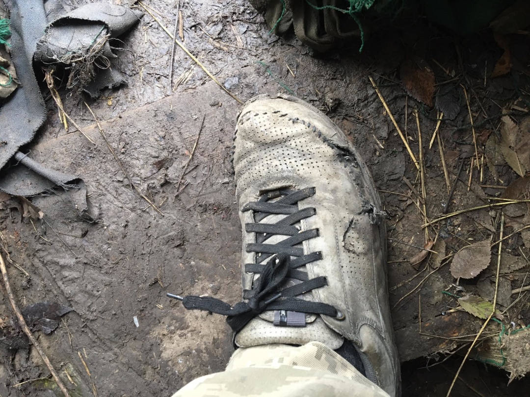 «Рвуться потроху. В процесі. P.S. Берців я маю достатньо, але не ношу. Загадав, що доходжу в своїх старих туфлях до Перемоги. Вони розваляться разом з РФ».