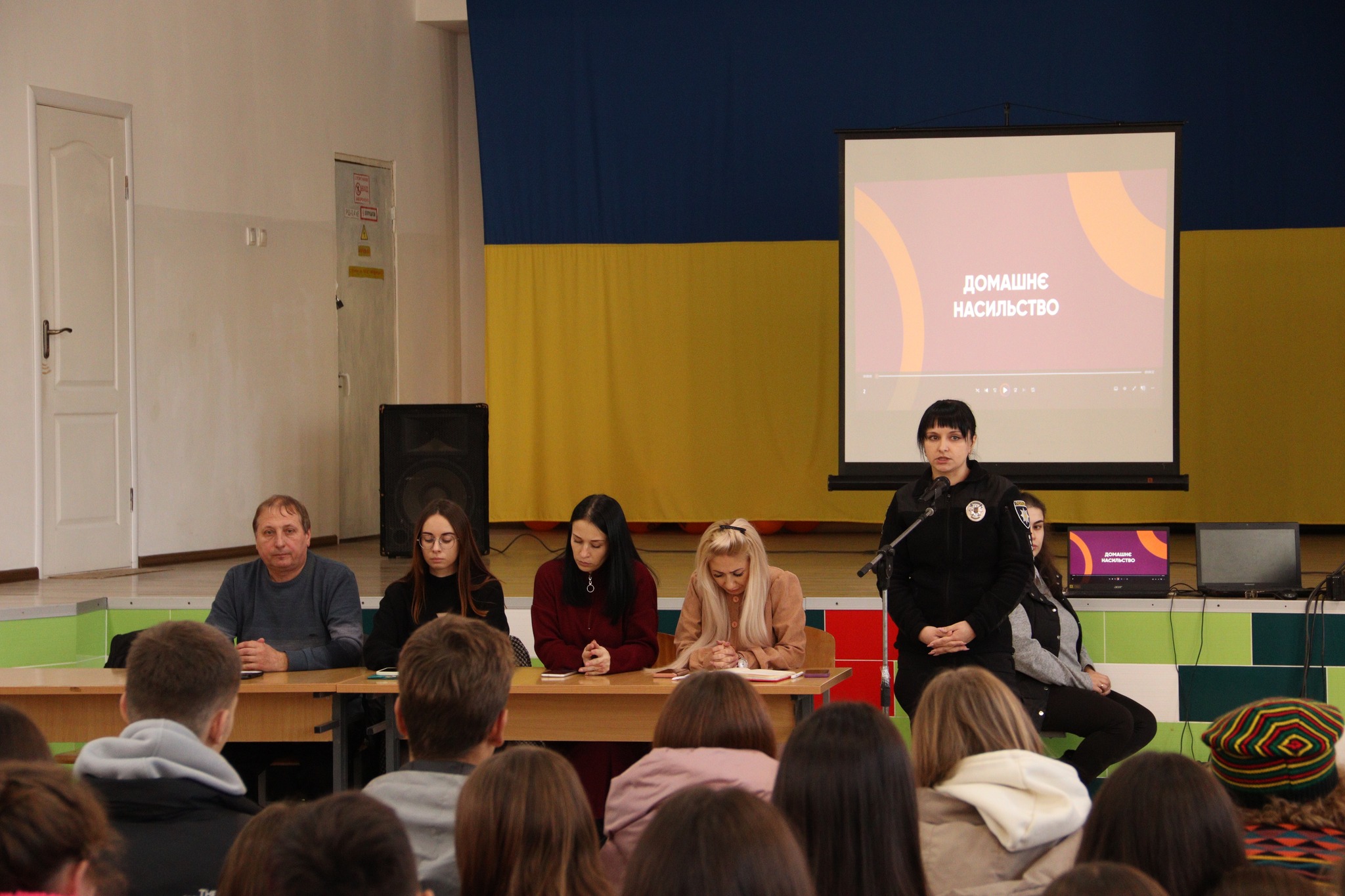 Заклад освіти відвідали старший інспектор сектору ювенальної превенції відділу взаємодії з громадами Дністровського РВП НУНП в Чернівецькій області капітан поліції Ірина Мігалескул, керівник спеціалізованої служби соціально-психологічного консультування осіб, що постраждали від насильства в сім’ї та/або насильства за ознакою статі КУ “Центр надання соціальних послуг” Сокирянської міської ради Аліна Молодовська та головний спеціаліст служби у справах дітей міської ради Олександр Гладкий.