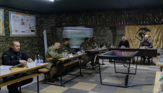 Глава МВС заслухав доповіді командирів «Азова», «Червоної Калини», «Словʼянської бригади» й «Люті», а також уперше – командирів стрілецьких батальйонів Нацполіції, бійці яких пройшли кількамісячну військову підготовку і вже виконують бойові завдання.
