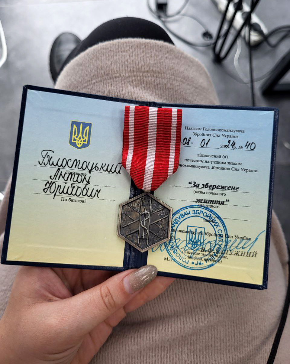 «Антон надзвичайно відповідальний та скрупульозний до деталей. Хоч за яку справу він брався, максимально детально та досконало її вивчав. Вже під час перших виїздів на позиції він врятував багато життів, намагався зберегти їм кінцівки, зупиняв кровотечі. Часто хлопці зустрічали його на вулиці у Краматорську, впізнавали і дякували. Одного разу, під час кількаденного бою, він отримав контузію та отруєння токсичними речовинами із снарядів, якими їх обстрілювали росіяни. Попри свій стан, він допомагав побратимам. 8 січня його нагородили почесним нагрудним знаком Головнокомандувача Збройних Сил України Валерія Залужного «За збережене життя. Антон не очікував такої відзнаки. Але я переконана, що вона заслужена і дуже пишалася коханим», – розповіла Світлана.