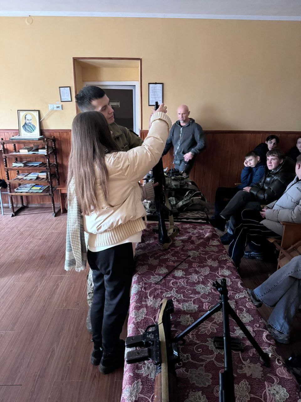 Захисники ознайомили молодь з озброєнням, засобами індивідуальної екіпіровки та бойовою технікою, яка застосовується в охороні, обороні та захисті кордонів нашої Держави. Із завершенням теорії ліцеїсти натхненно, під наглядом військових та свого вчителя, практикувалися у застосуванні нових знань. Діти за бажання практикувалися в розбиранні-збиранні автоматичної зброї, приміряли засоби захисту, оглядали транспортні засоби, власноруч здійснювали моніторинг територій на новітньому обладнанні та із задоволенням й азартом робили фотосесію на згадку.