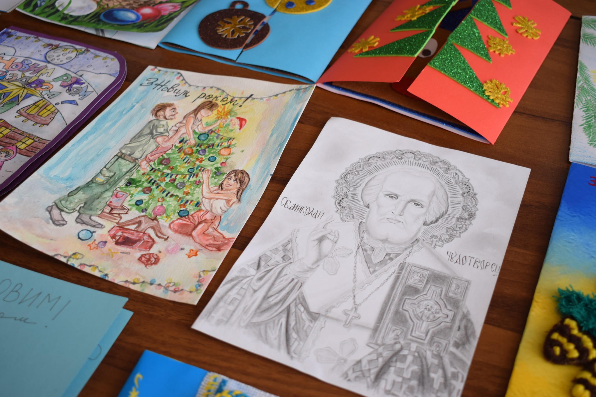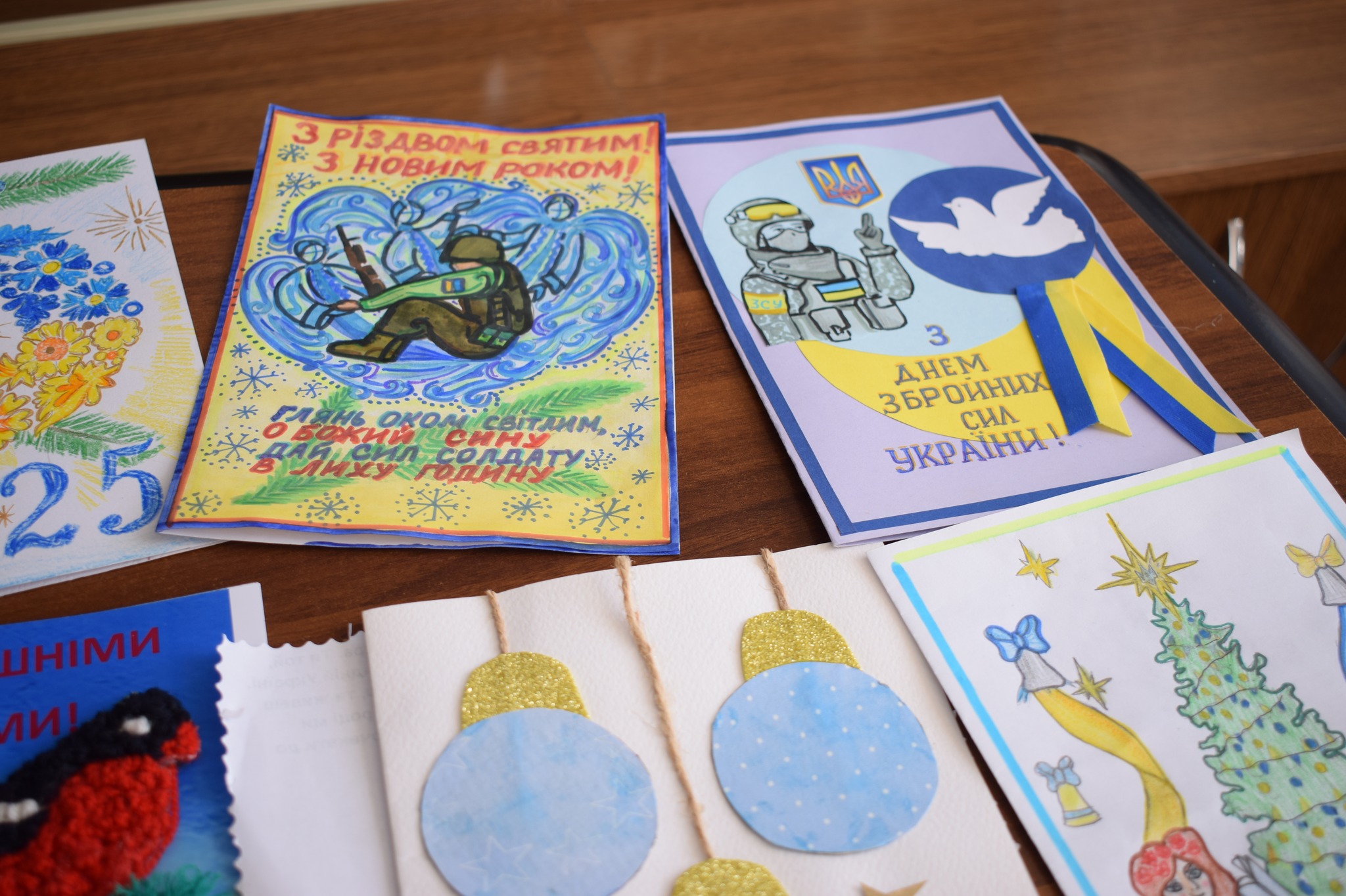 Діти також підготували новорічні листівки. Вони будуть передані нашим воїнам, аби підтримати їх теплом дитячих сердець у ці зимові свята.