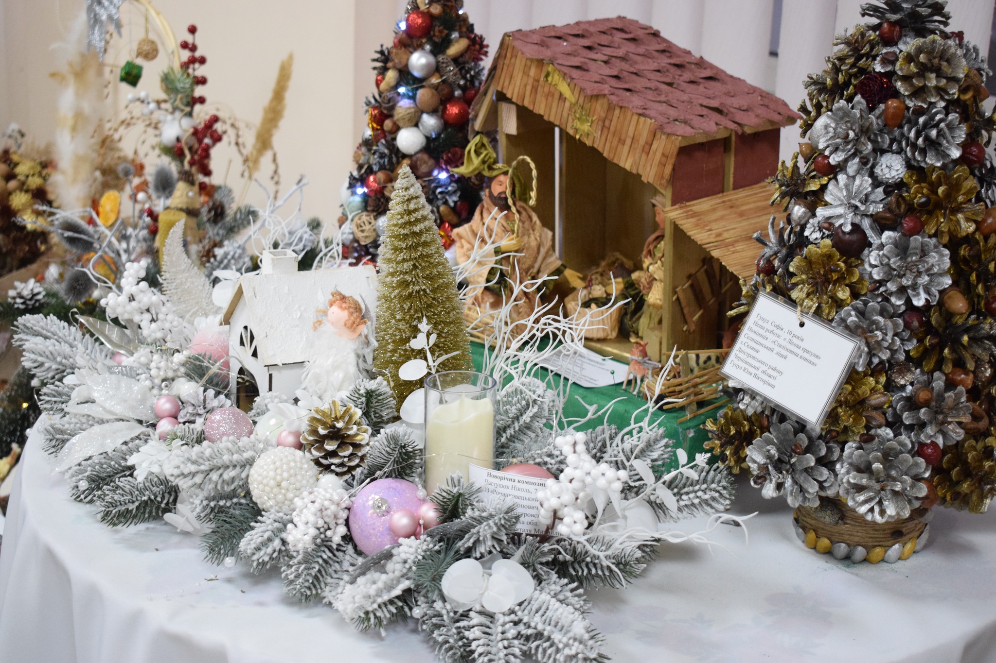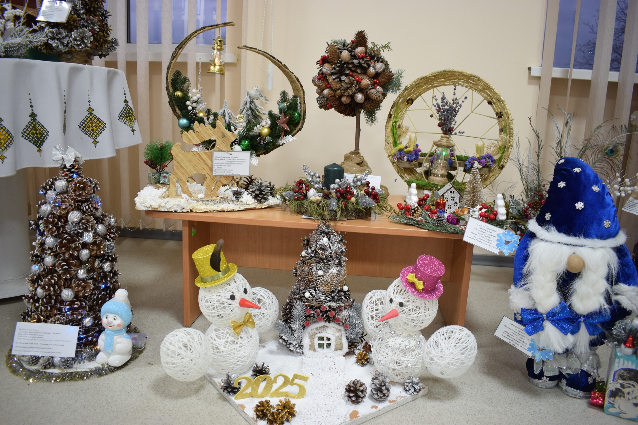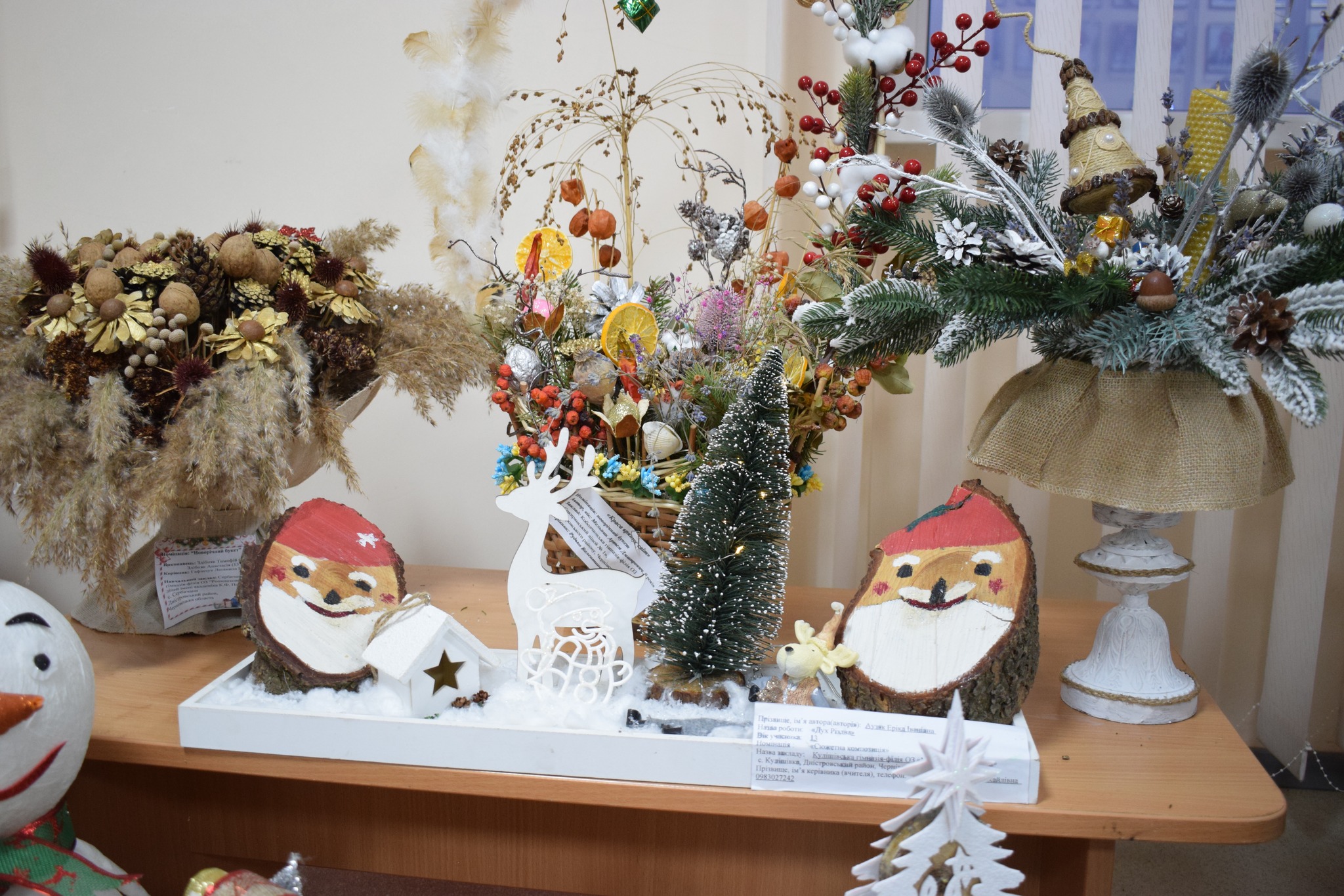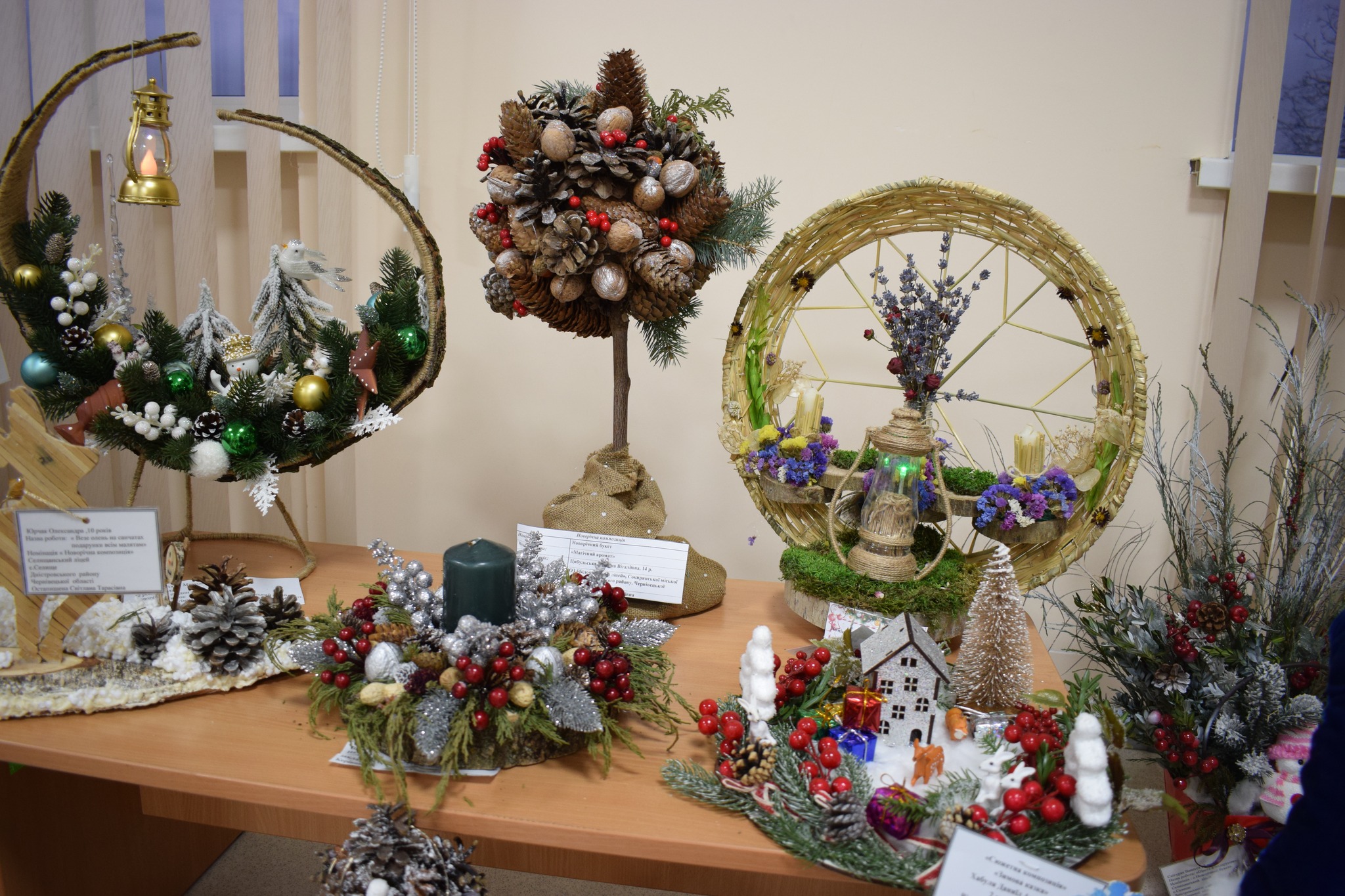 Серед представлених номінацій – «Стилізована ялинка», «Новорічний букет», «Новорічна композиція», «Новорічний вінок», «Сюжетна композиція», «Флористична новорічна картина чи колаж», «Новорічний подарунок». Діти презентували близько сотні творчих творінь.
