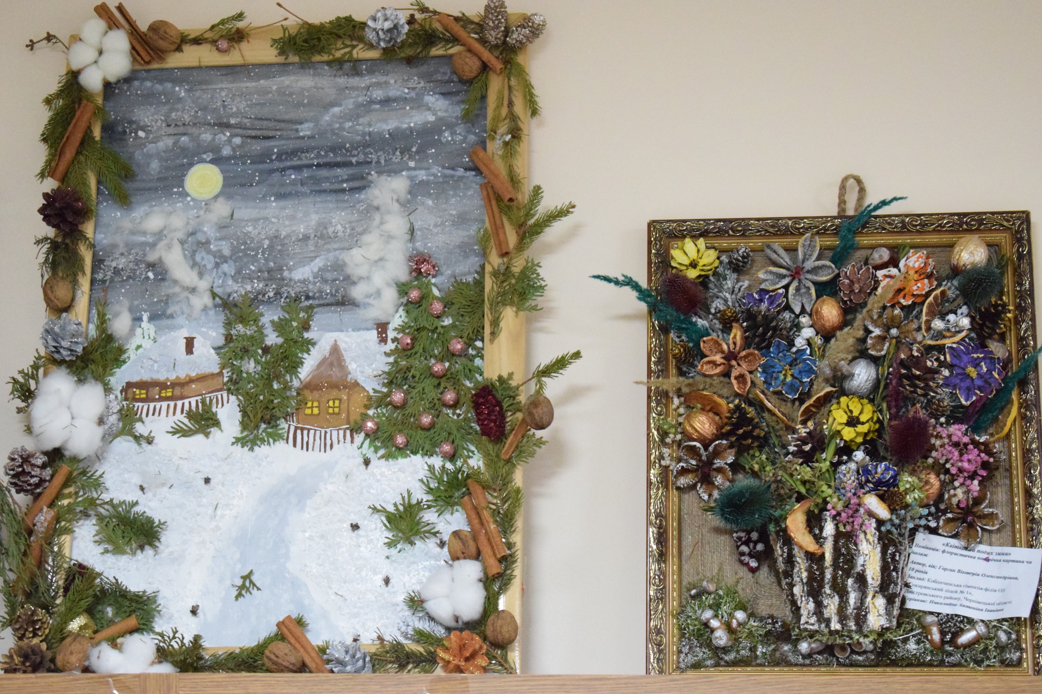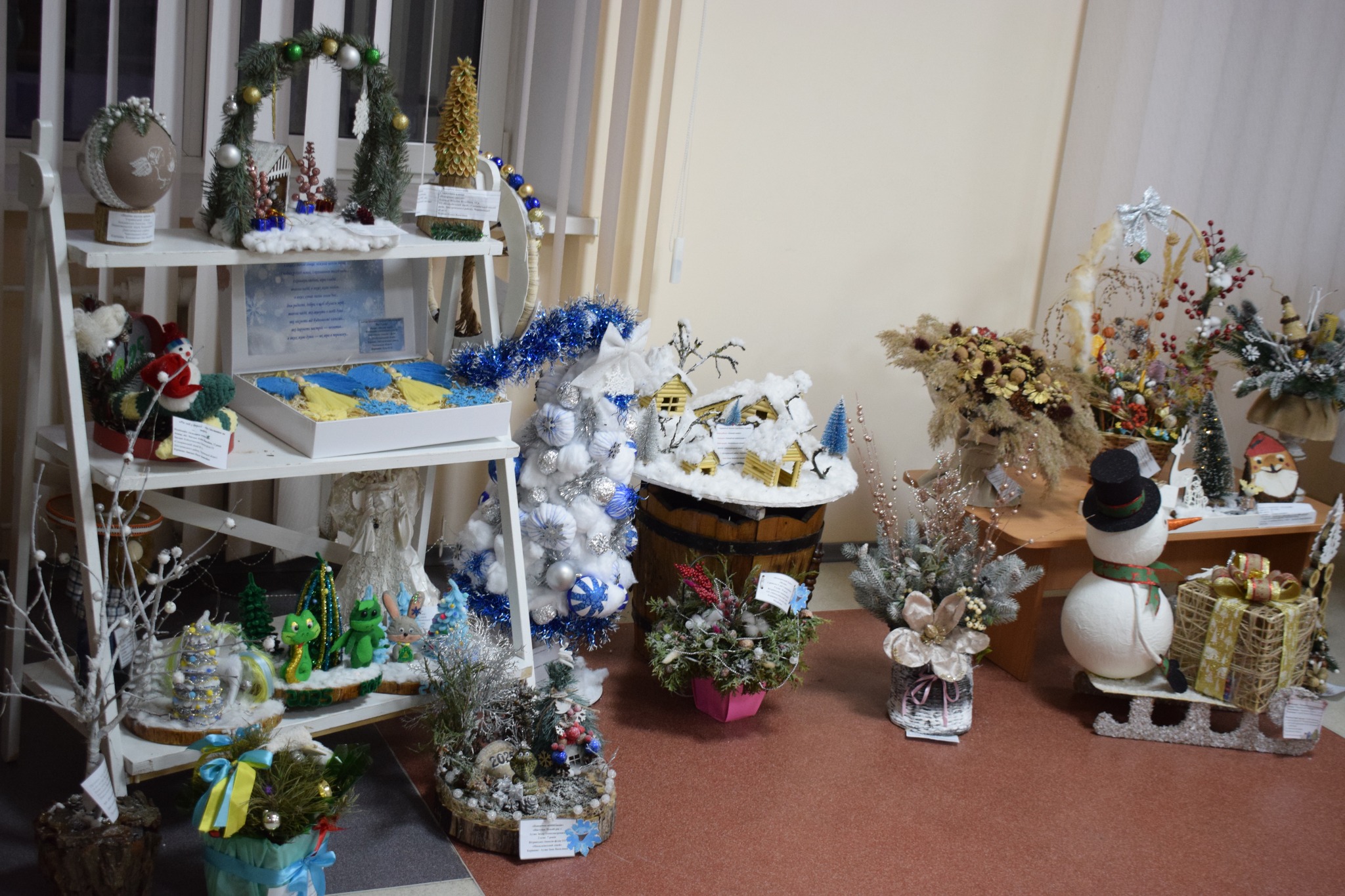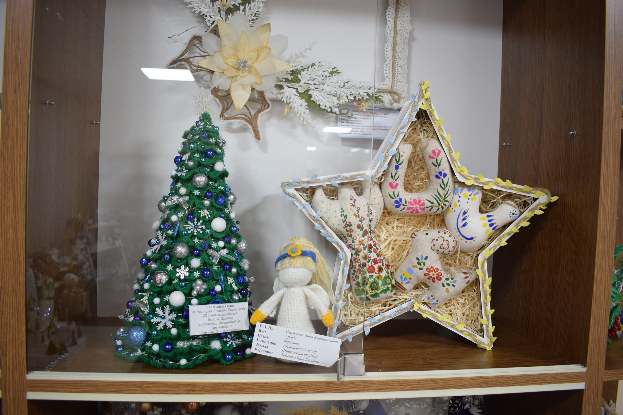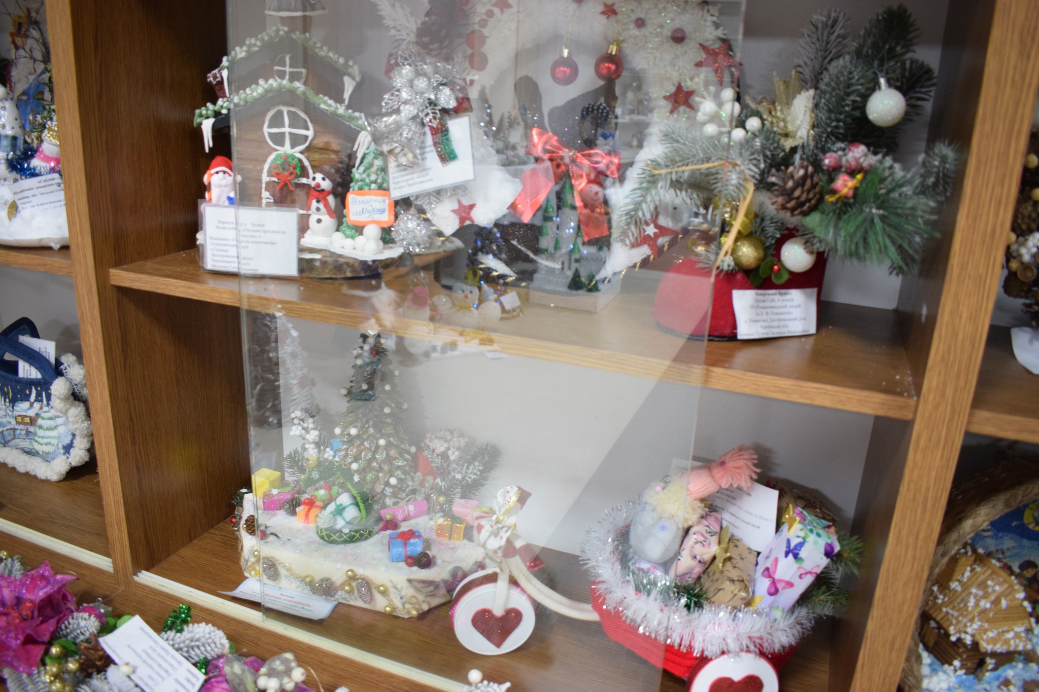 Серед представлених номінацій – «Стилізована ялинка», «Новорічний букет», «Новорічна композиція», «Новорічний вінок», «Сюжетна композиція», «Флористична новорічна картина чи колаж», «Новорічний подарунок». Діти презентували близько сотні творчих творінь.