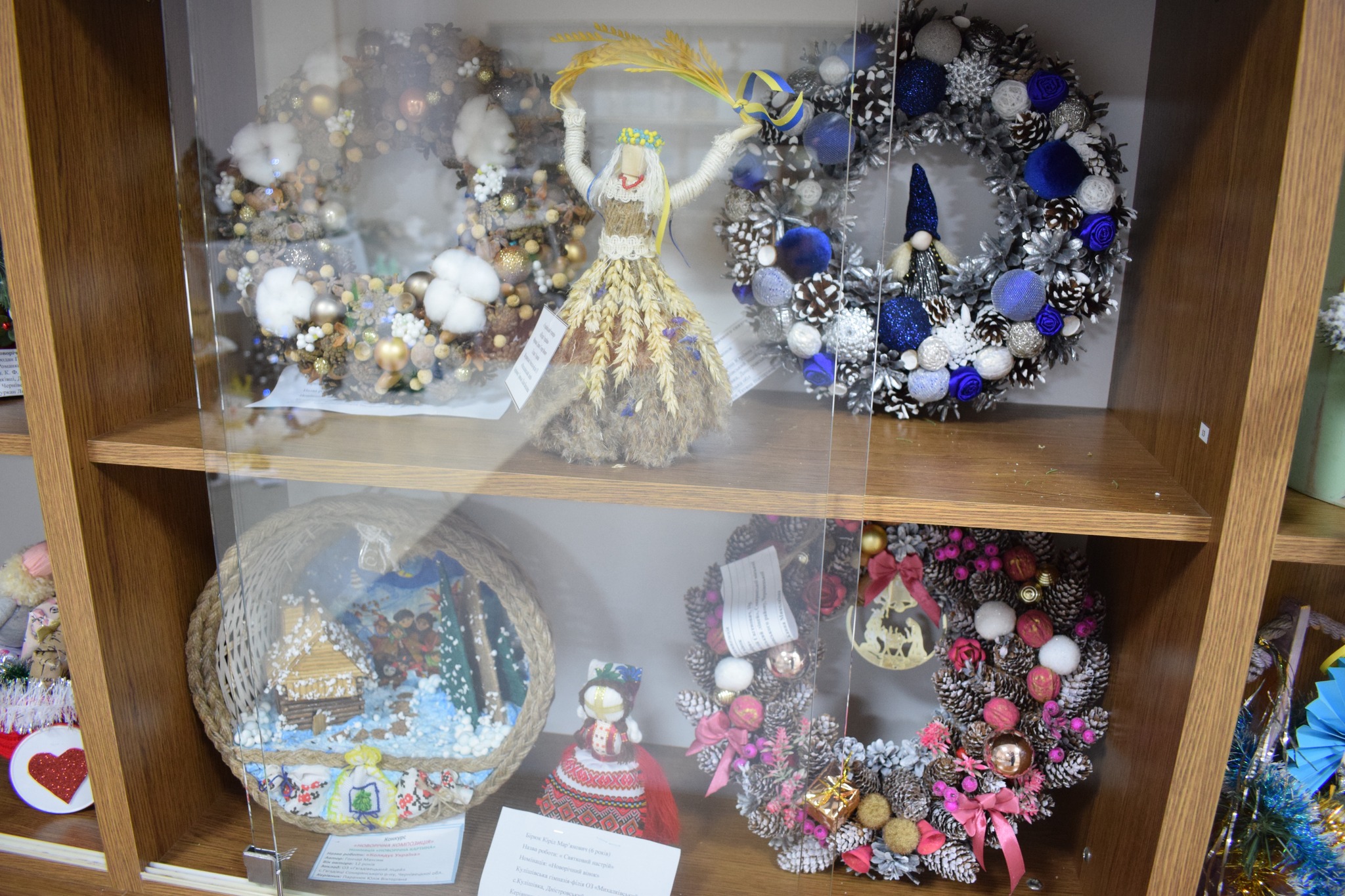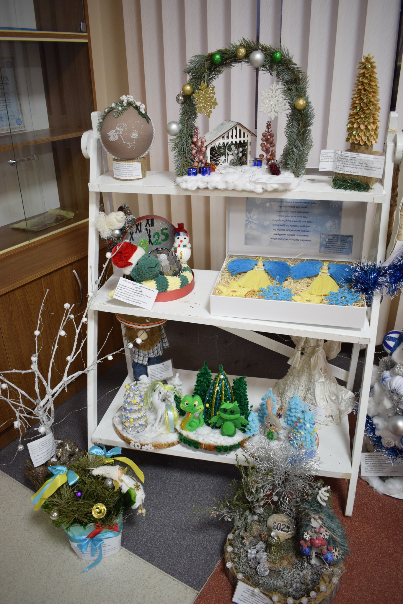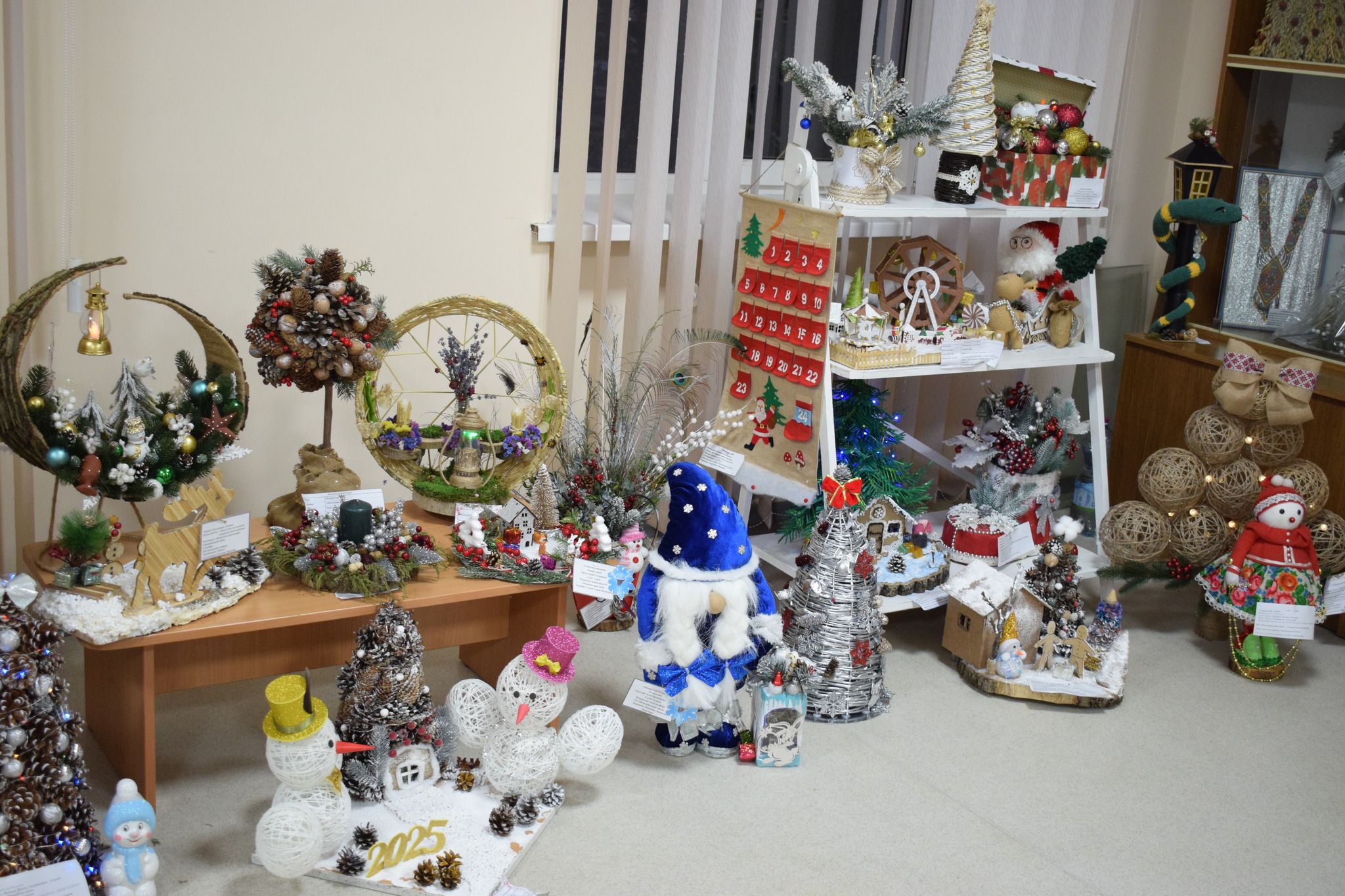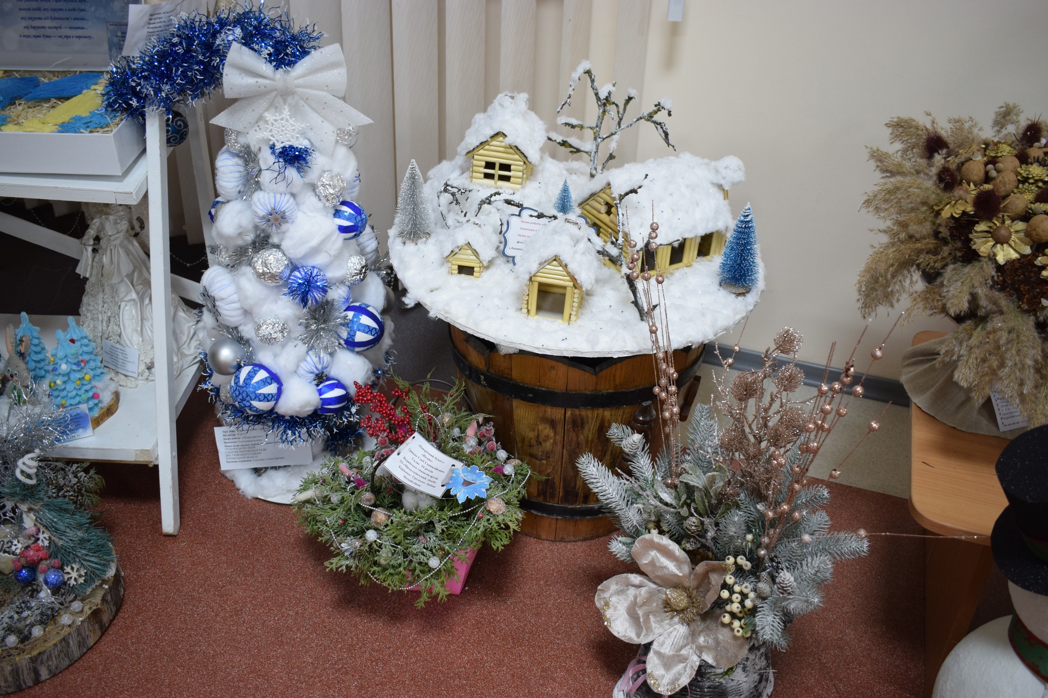 Серед представлених номінацій – «Стилізована ялинка», «Новорічний букет», «Новорічна композиція», «Новорічний вінок», «Сюжетна композиція», «Флористична новорічна картина чи колаж», «Новорічний подарунок». Діти презентували близько сотні творчих творінь.