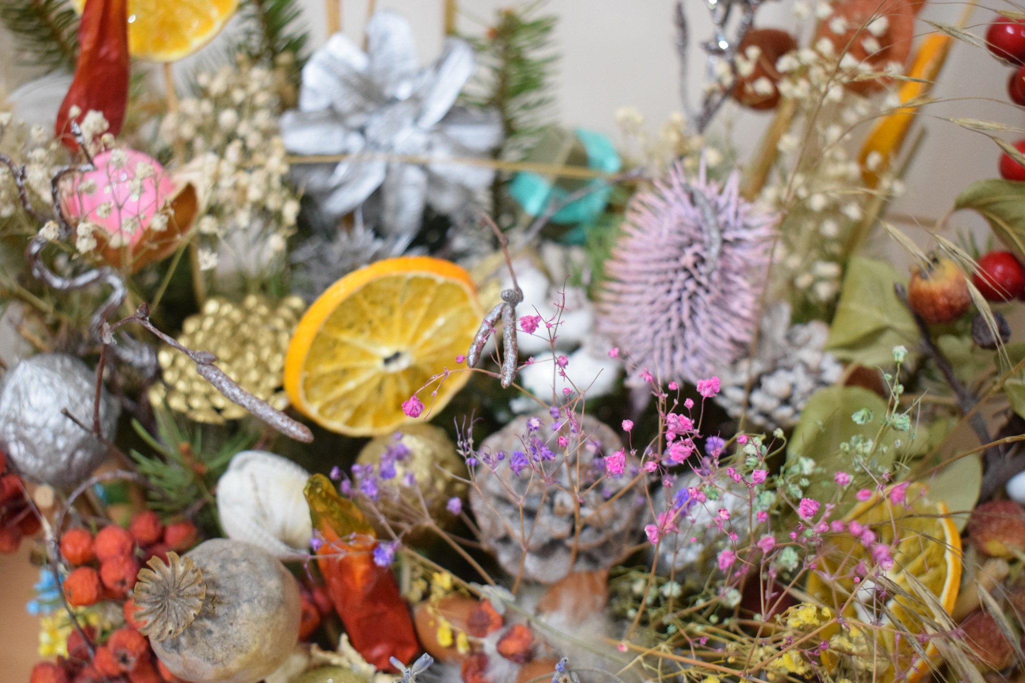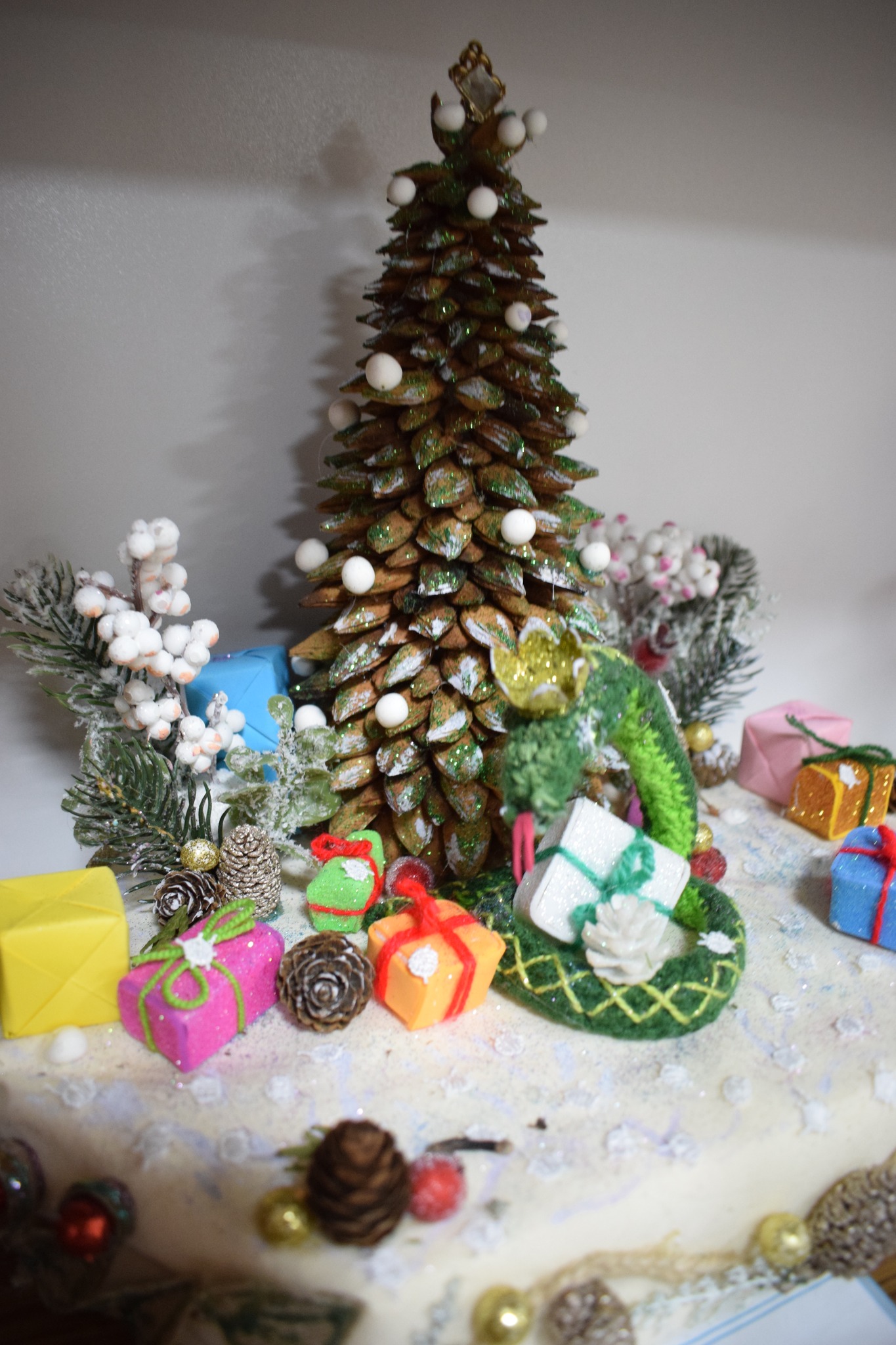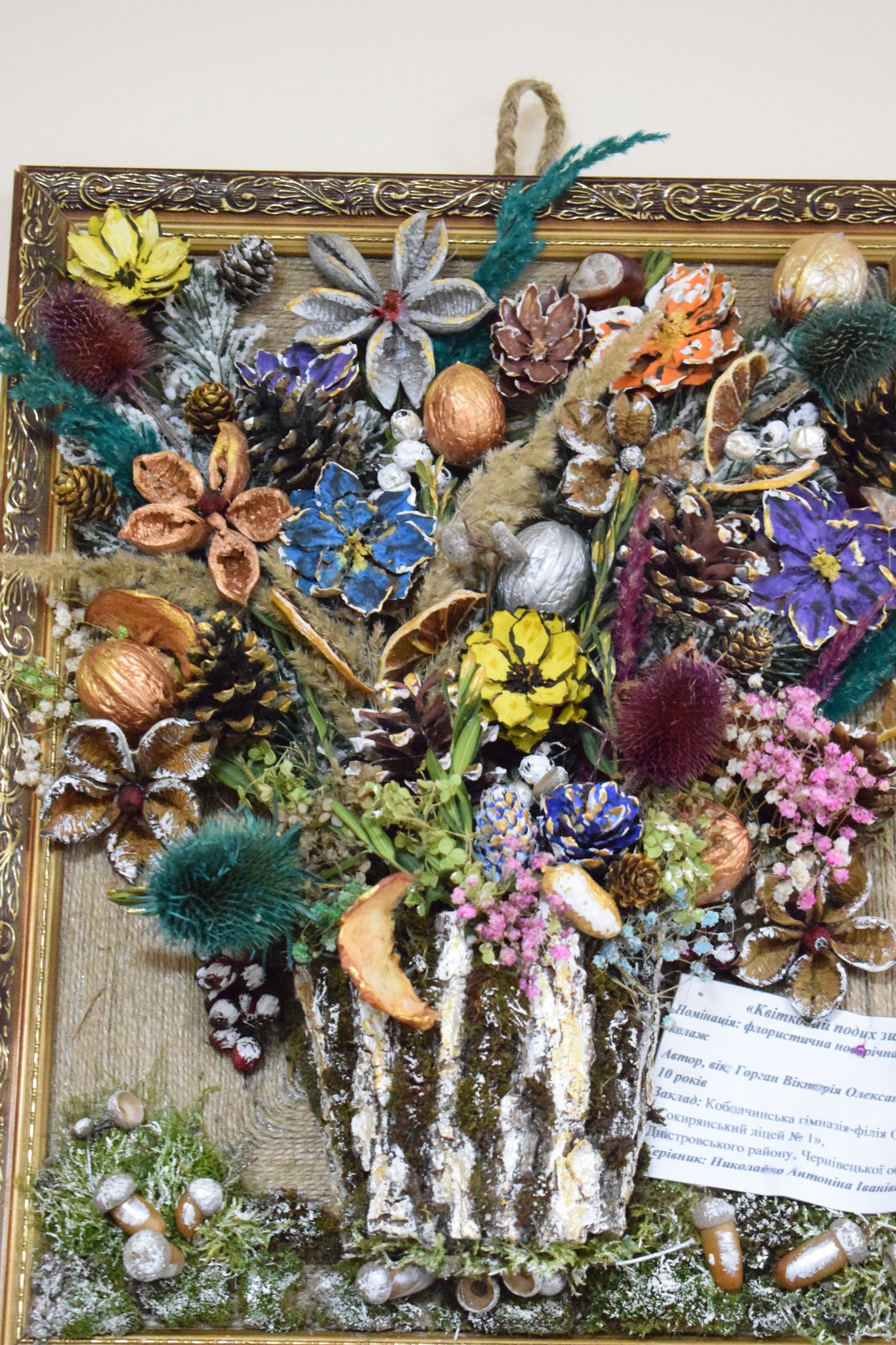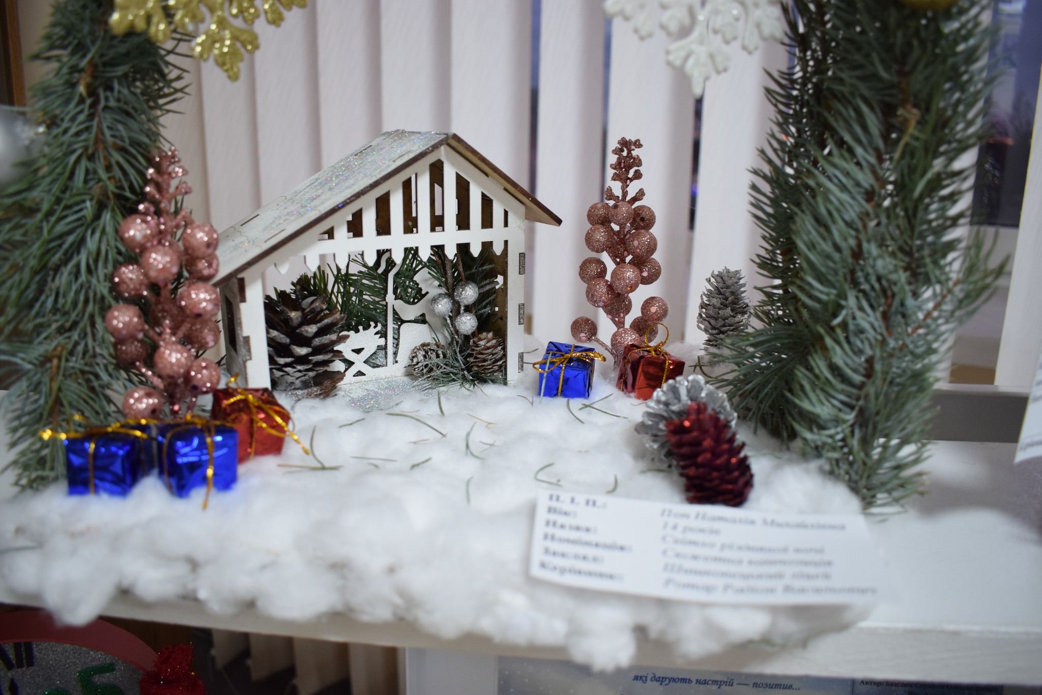 Серед представлених номінацій – «Стилізована ялинка», «Новорічний букет», «Новорічна композиція», «Новорічний вінок», «Сюжетна композиція», «Флористична новорічна картина чи колаж», «Новорічний подарунок». Діти презентували близько сотні творчих творінь.