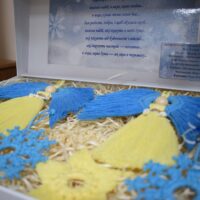 Частину цих чудових виробів було розміщено у міській раді, де після чергової сесії депутати та всі охочі мали змогу придбати їх, аби підтримати наших захисників. Завдяки старанням дітей та добрим серцям небайдужих вдалося зібрати 7900 гривень, які будуть передані військовим.