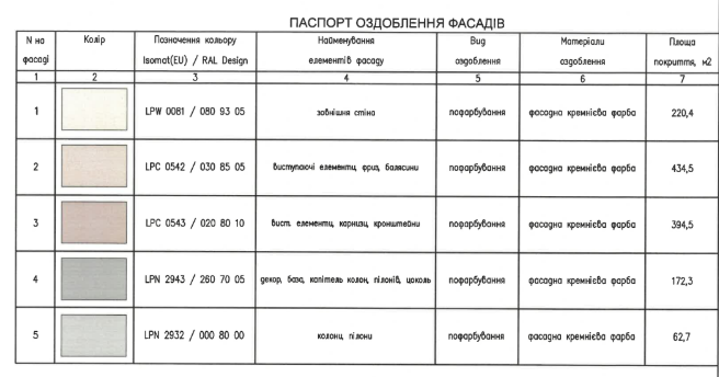 У Департаменті інфраструктури та благоустрою у відповіді на запит «Шпальти» представили документи, які ухвалювали для реставрації. Зокрема, під час роботи мали б використовуватися такі кольори: