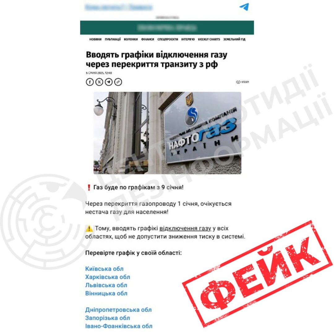 Інформація про графіки відключення газу, нібито у звʼязку з припиненням транзиту російського газу через Україну, – не відповідає дійсності.