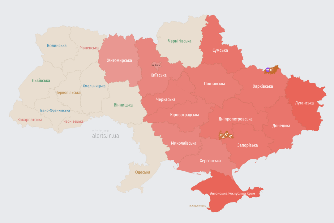 У столиці та низці східних, центральних і південних областей була оголошена тривога у зв'язку із загрозою ворожих безпілотників.