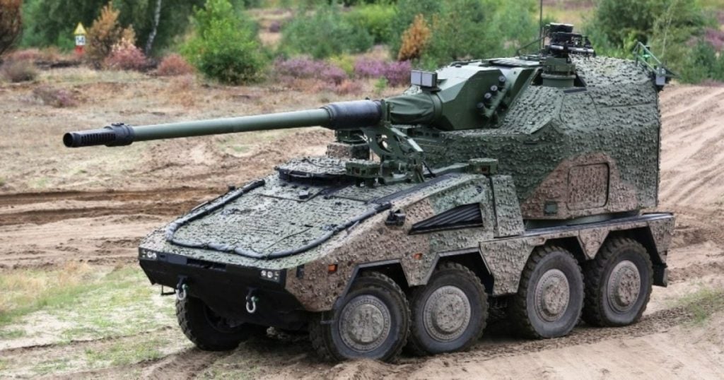 Міністр оборони Німеччини Борис Пісторіус передав українському послу Олексію Макеєву першу з 54 колісних САУ RCH 155.