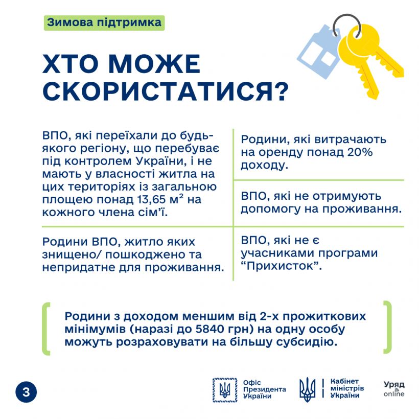 Це частина Зимової підтримки – ініціативи Президента України Володимира Зеленського й Уряду, спрямованої на допомогу українським родинам у складні зимові місяці. Це комплексний пакет нових і вже наявних програм, які роблять допомогу доступнішою для всіх, хто її потребує.