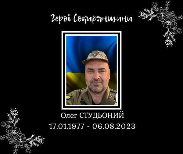 Олег Студьоний загинув 06 серпня 2023 року під час виконання бойового завдання на Сумщині.