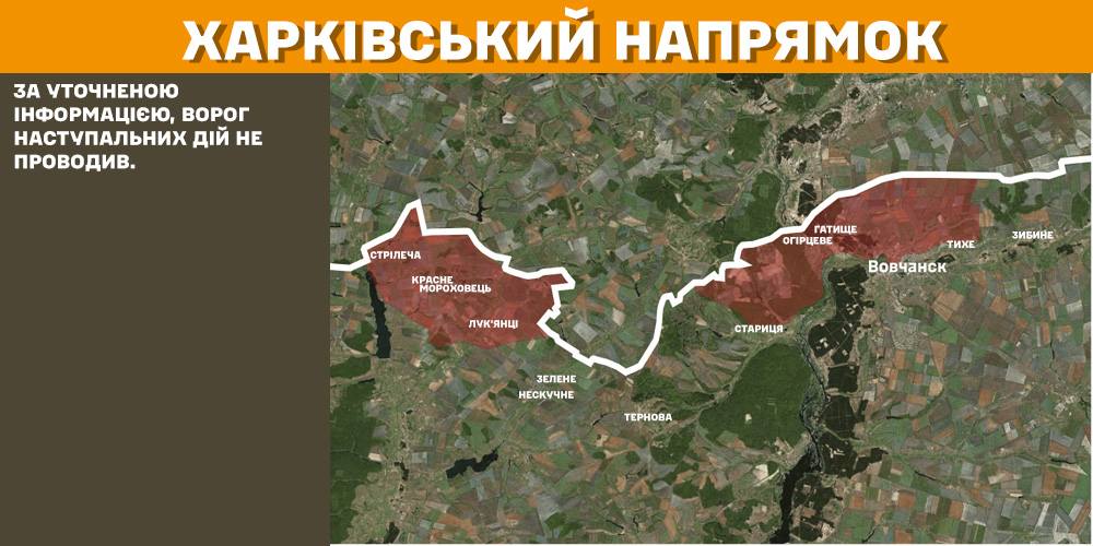На Харківському напрямку, за уточненою інформацією, ворог наступальних дій не проводив.