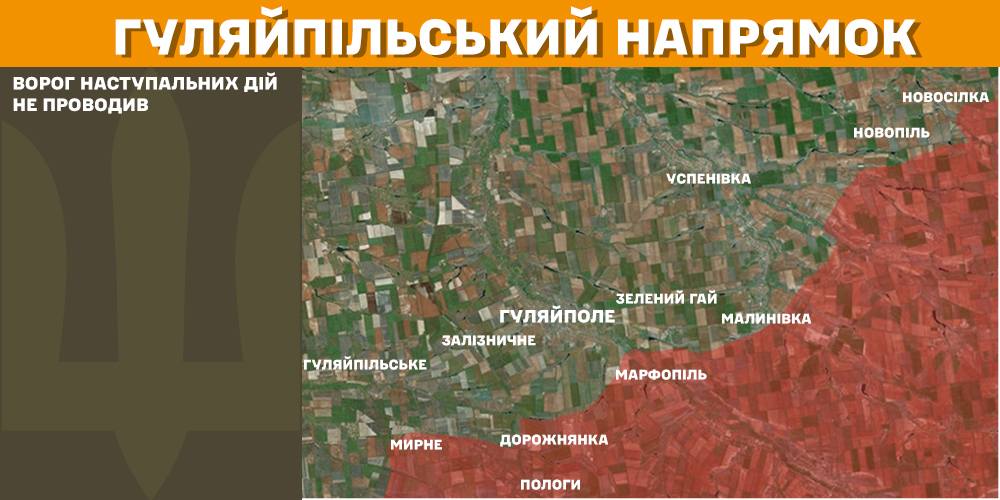 На Гуляйпільському та Придніпровському напрямках ворог наступальних дій не проводив.