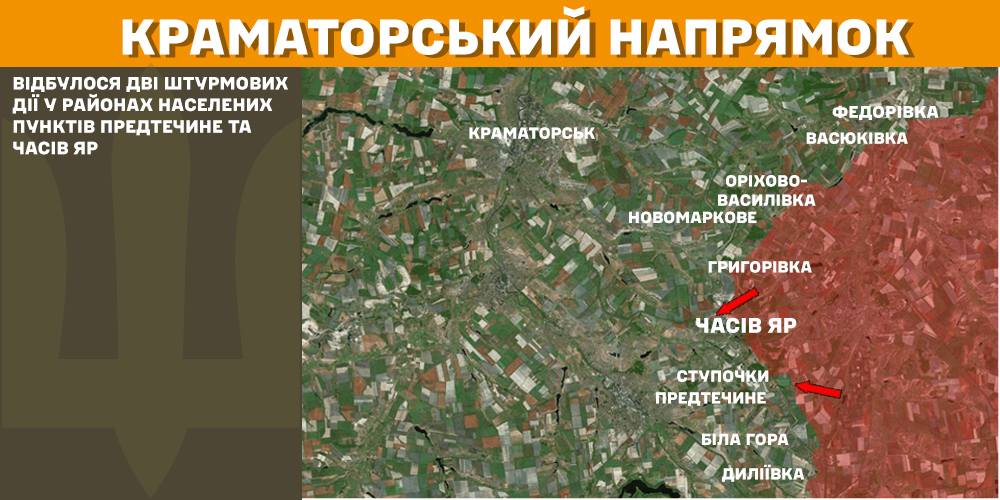 На Краматорському напрямку відбулося дві штурмових дії у районах населених пунктів Предтечине та Часів Яр.