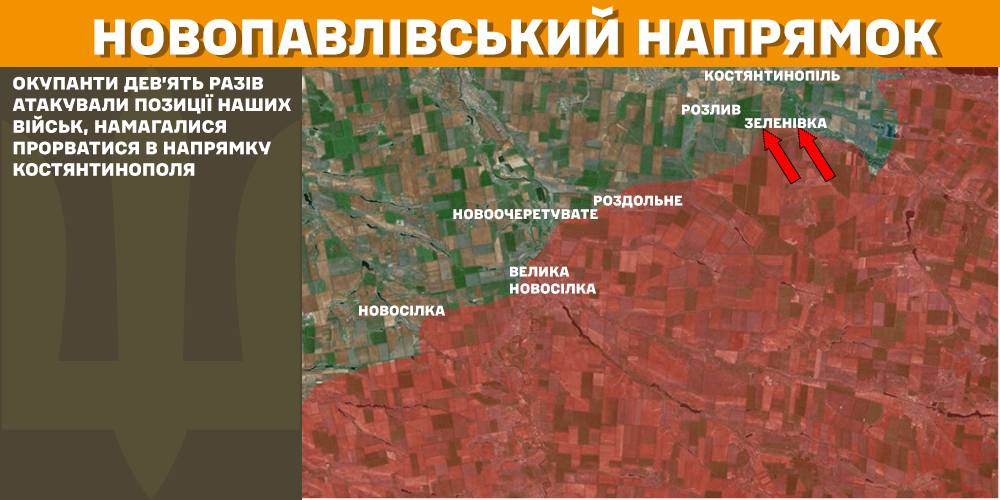 На Новопавлівському напрямку загарбники дев’ять разів атакували українські позиції, намагалися прорватися в напрямку Костянтинополя.
