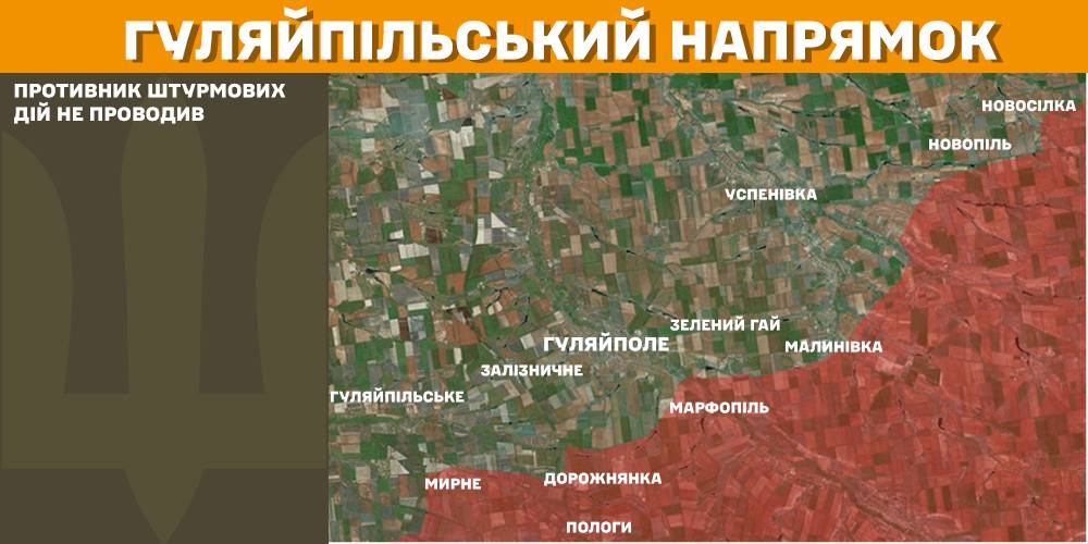 На Гуляйпільському, Оріхівському та Придніпровському напрямках минулої доби ворог штурмових дій не проводив.