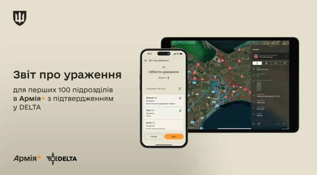 У застосунку для військових "Армія+" запрацював звіт про ураження ворожих обʼєктів. Підтвердження пошкодження чи знищення відбувається в бойовій системі DELTA.