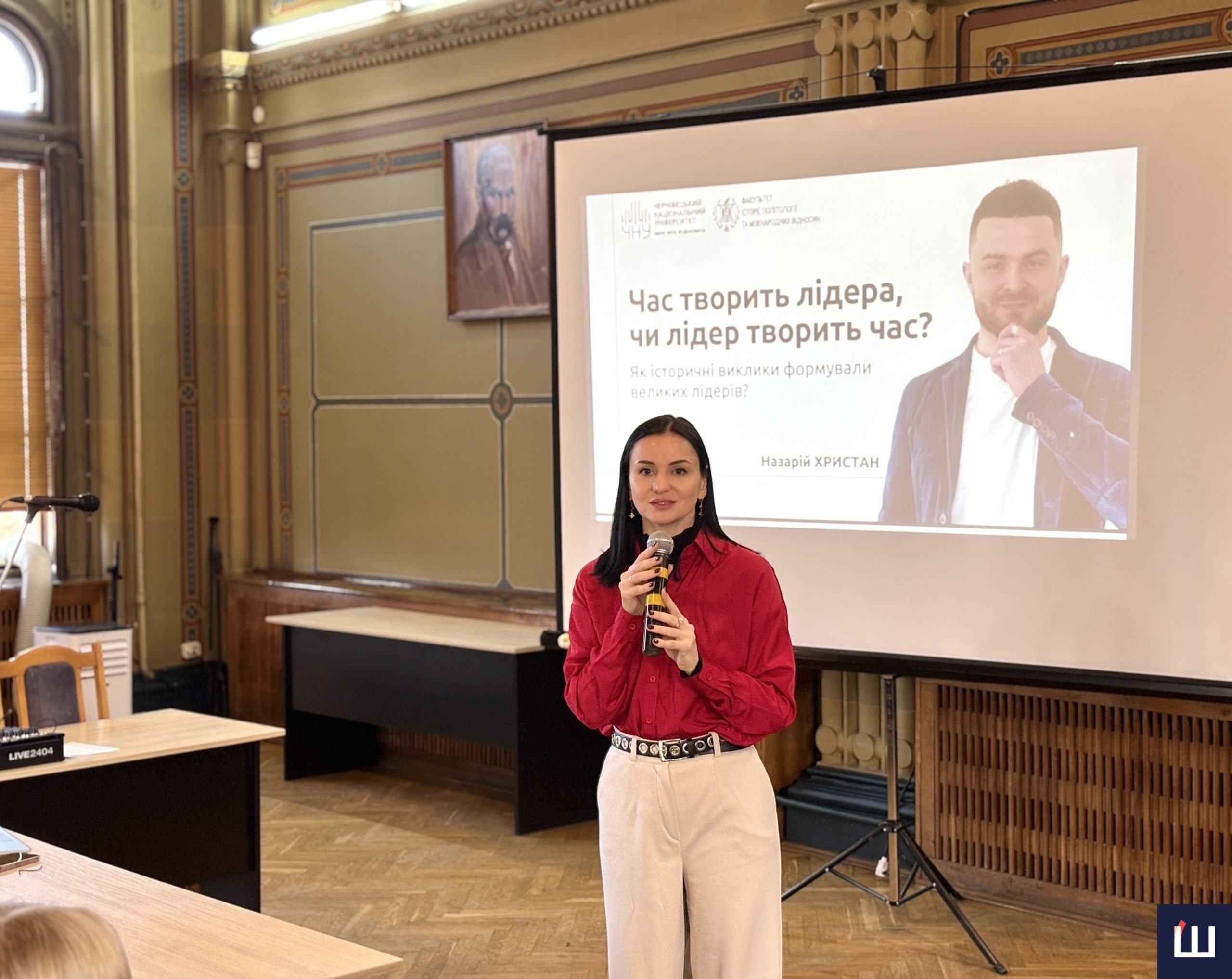 Перша лекція – «Час творить лідера чи лідер творить час? Як історичні виклики формували великих лідерів?» від кандидата історичних наук, викладача факультету історії, політології та міжнародних відносин, голови ради молодих вчених при Чернівецькій обласній військовій адміністрації Назарія Христана.