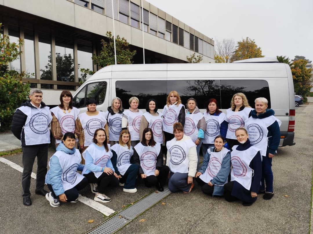 Делегація українських об'єднань родин зниклих і полонених захисників біля Центрального офісу Міжнародного комітету Червоного Хреста у Женеві.