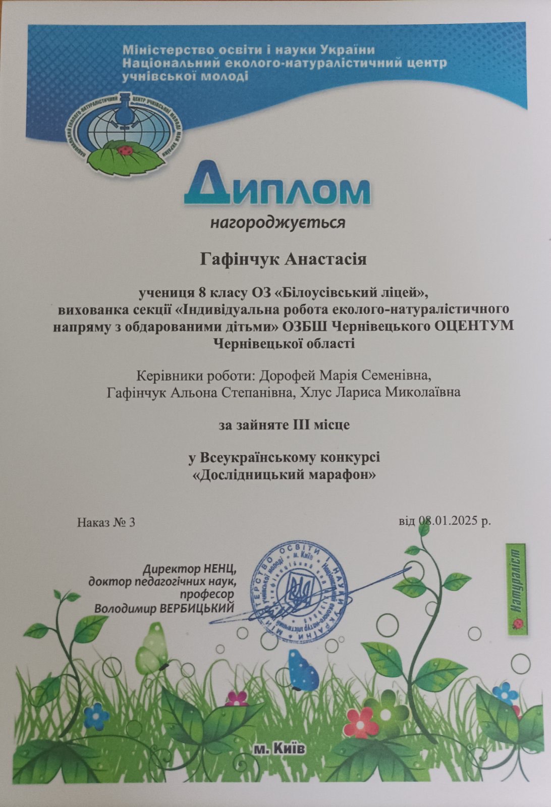 ІІІ місце – Анастасія Гафінчук, учениця ОЗ «Білоусівський ліцей», вихованка того ж гуртка.