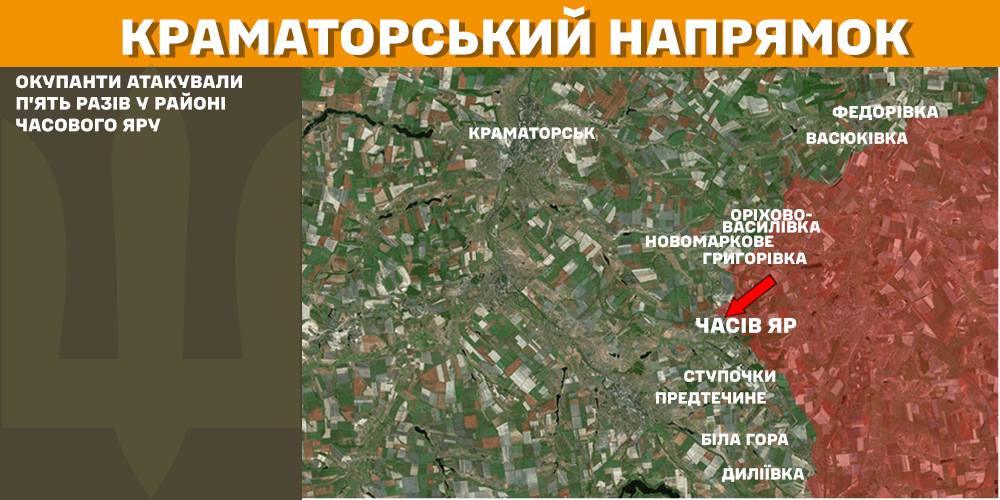 На Краматорському напрямку окупанти атакували п’ять разів у районі Часового Яру.