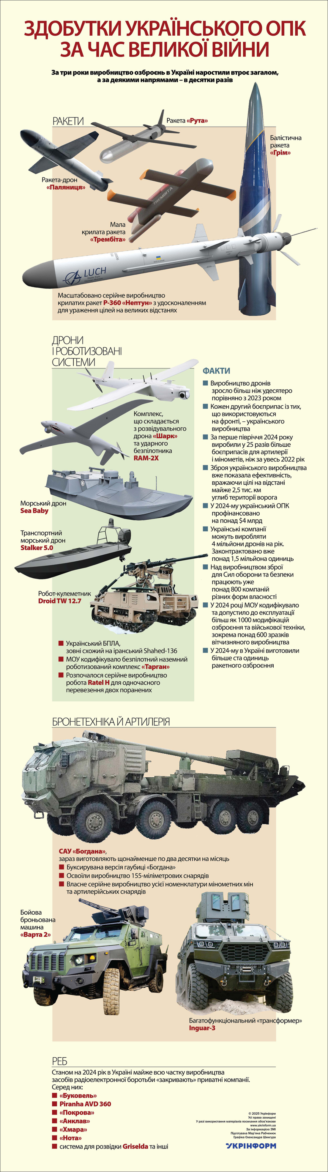 За три роки виробництво озброєнь в Україні наростили втроє загалом, а за деякими напрямами – в десятки разів