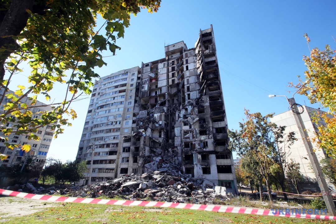 Зруйнована внаслідок російського ракетного удару багатоповерхівка у житловому масиві Салтівка, Харків, 9 жовтня 2022 року.